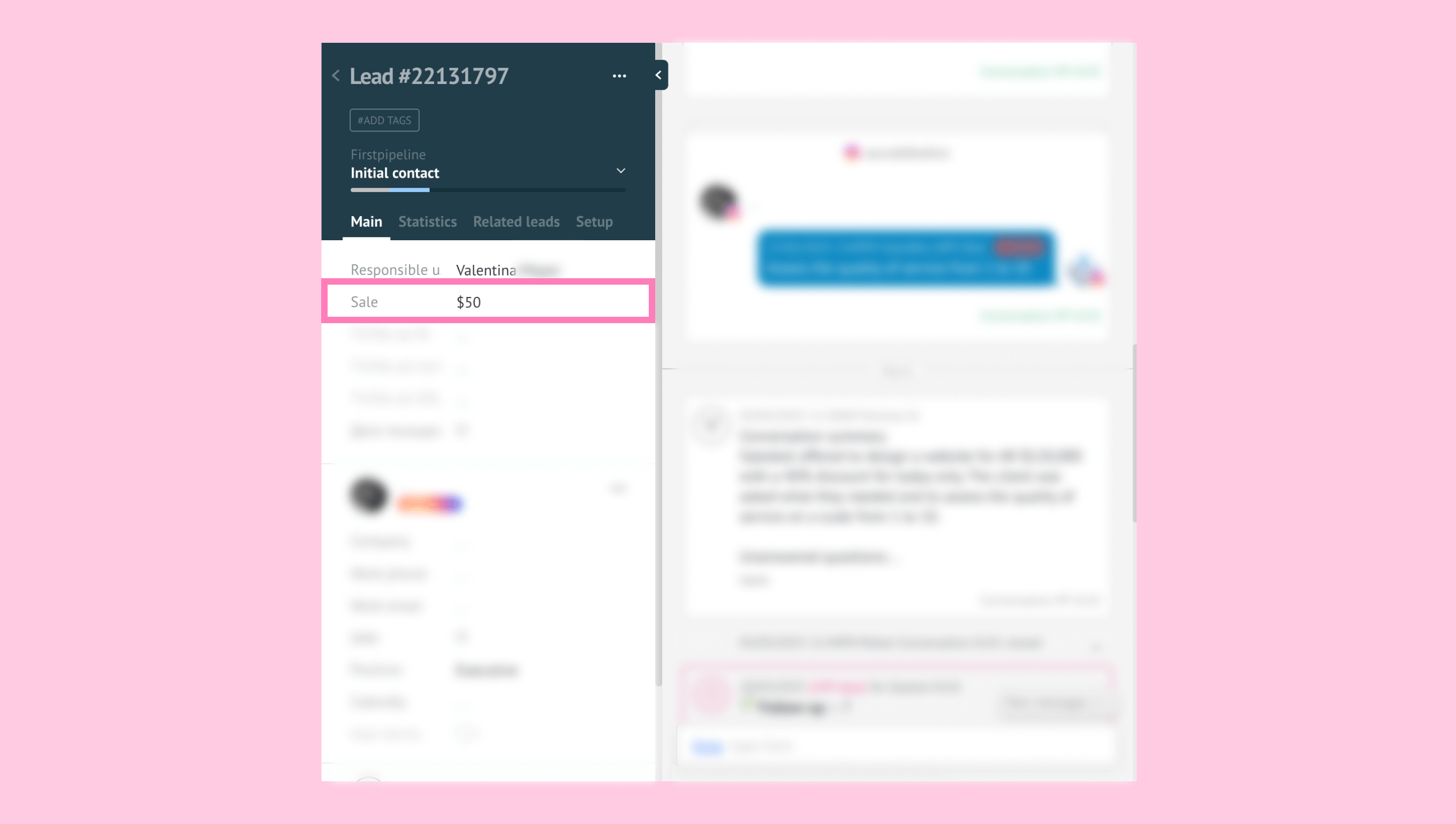Click the lead link and fill in the missing amount in the Sale field to keep your revenue and ROI accurate.
