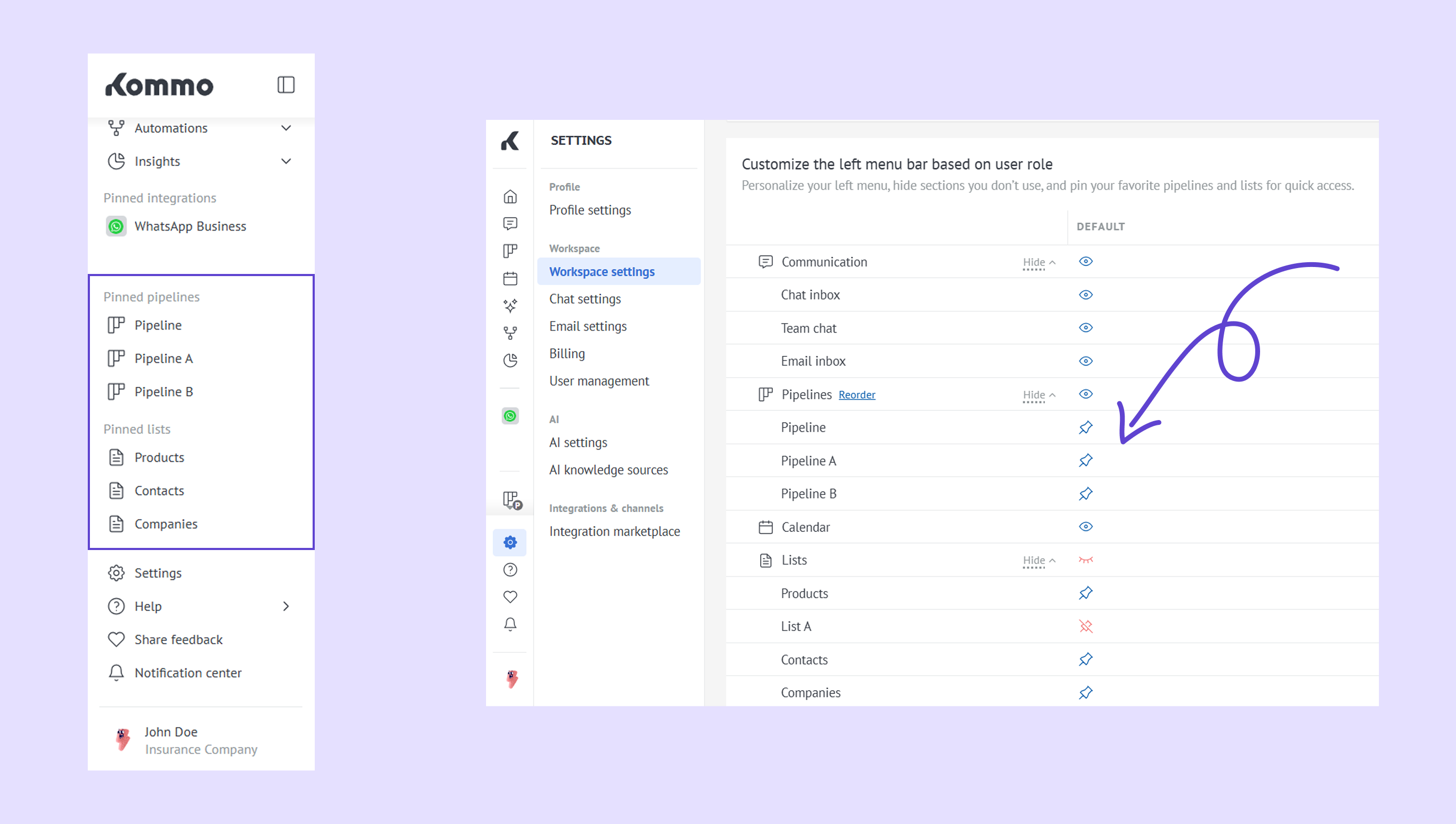 Bots – build automated flows to handle routine tasks and guide leads through your pipeline. -