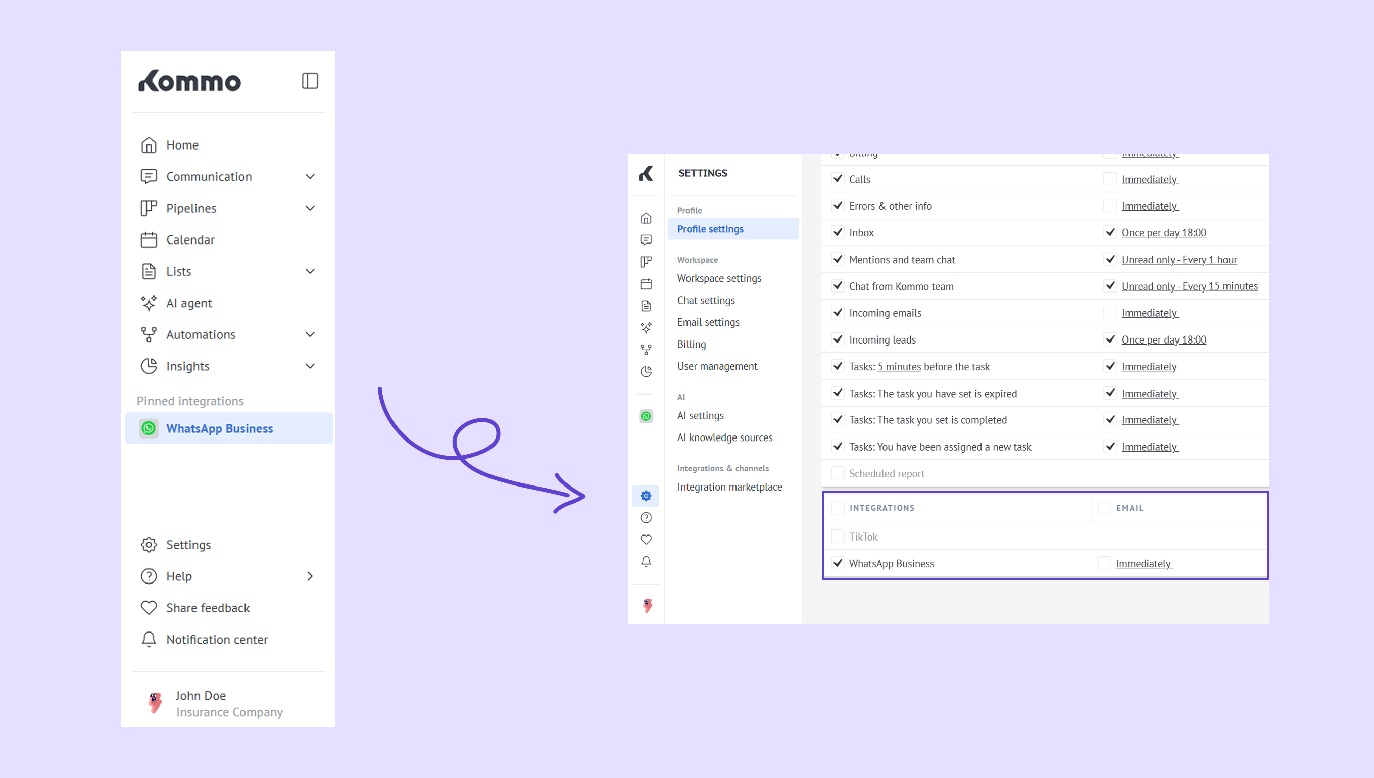 Smarter settings – Profile, notifications, workspace, and billing are now gathered in one place, making account management more straightforward. -