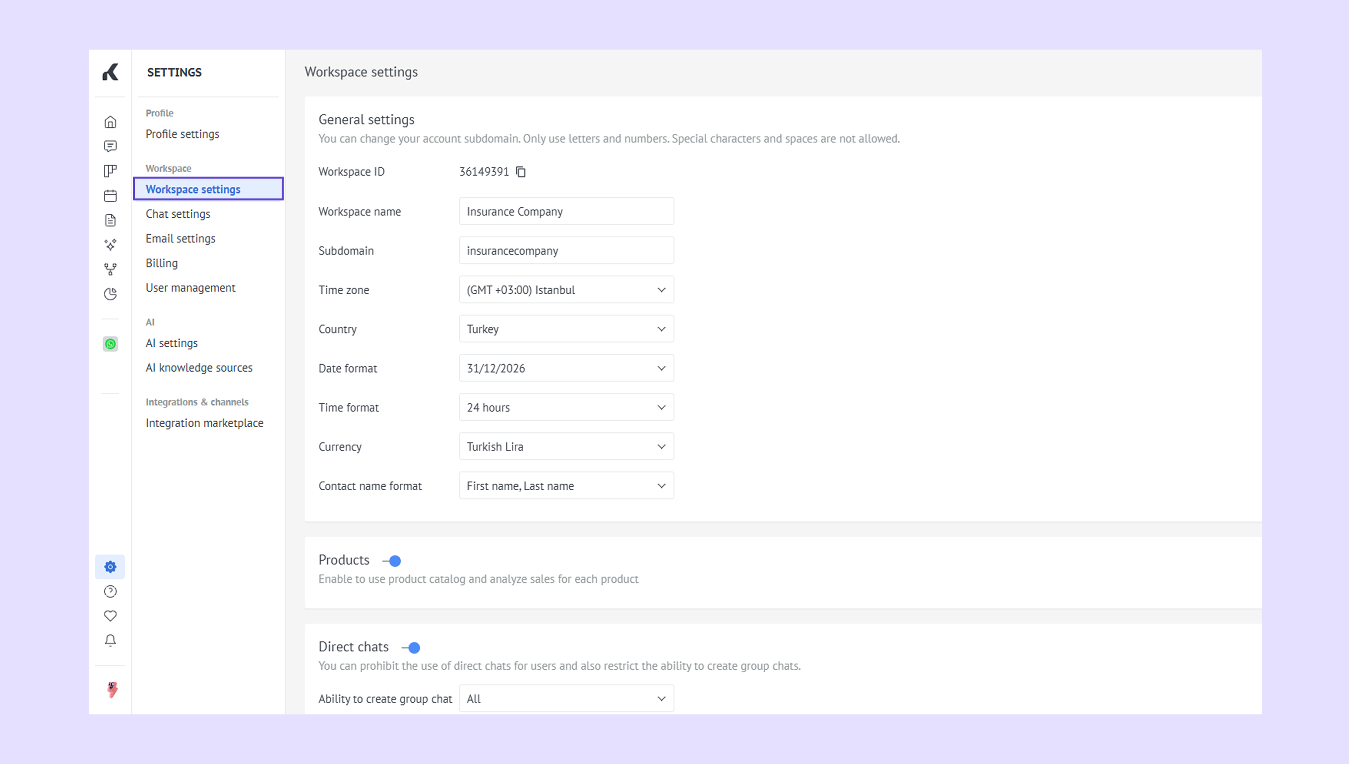 Workspace settings (formerly General settings) – customize your workspace to fit your team’s needs. -