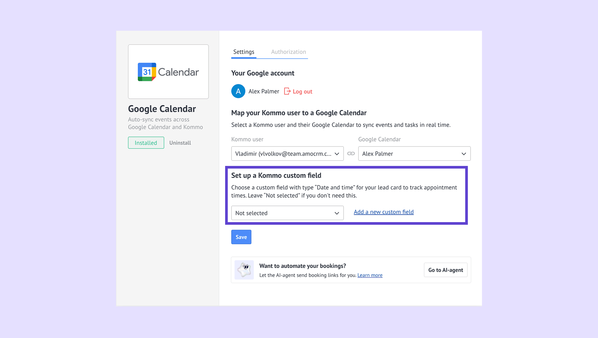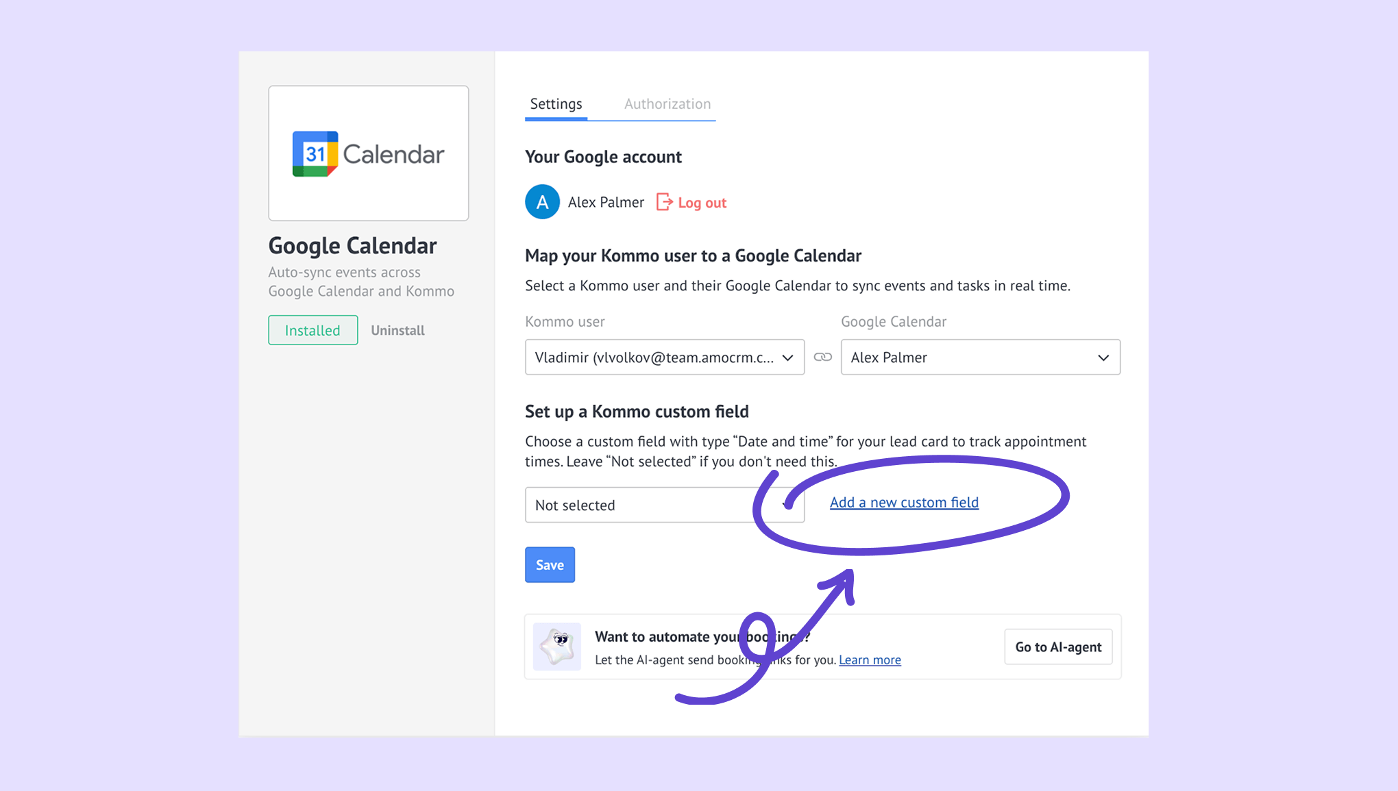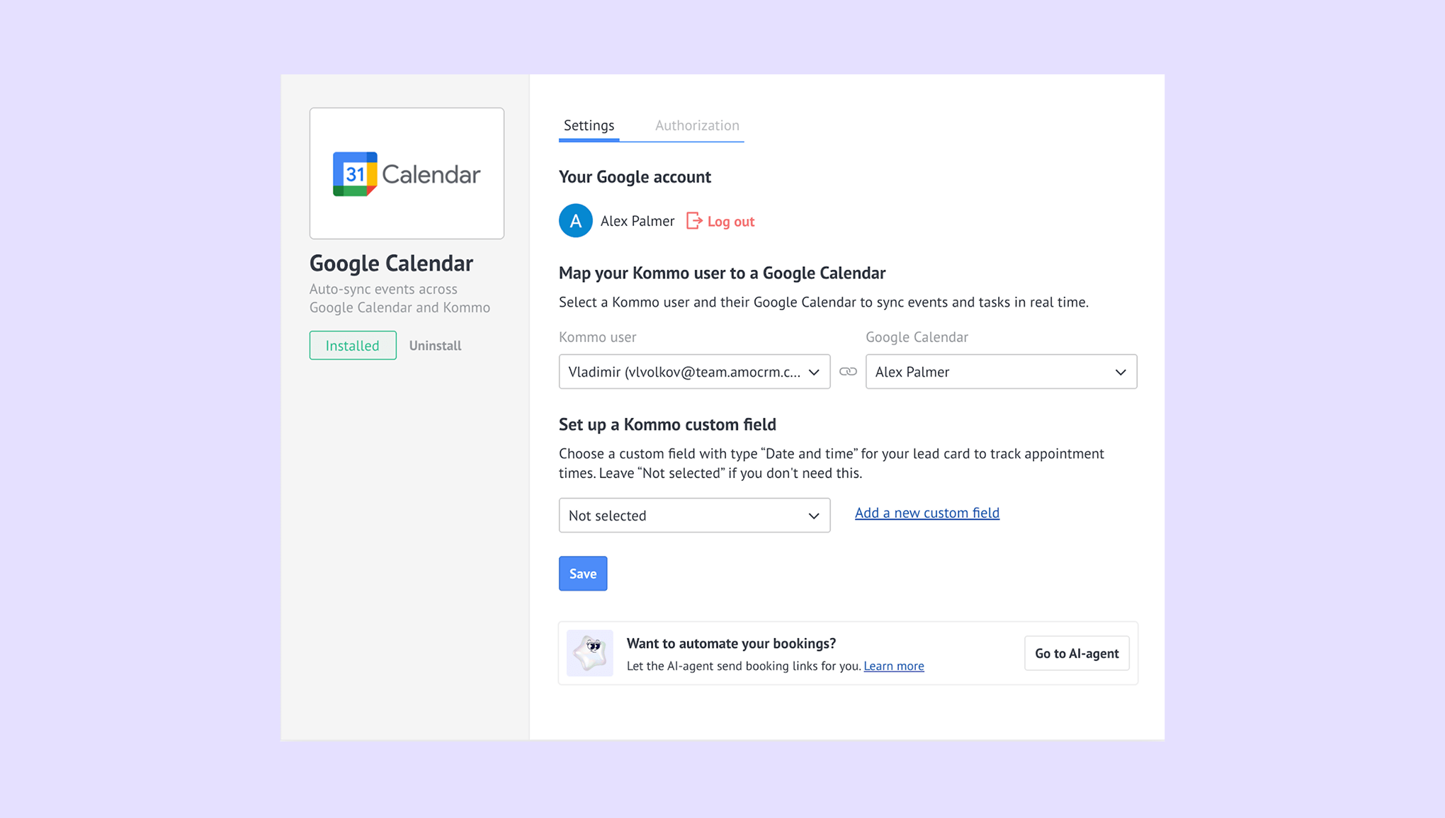 Connect Google Calendar to Kommo