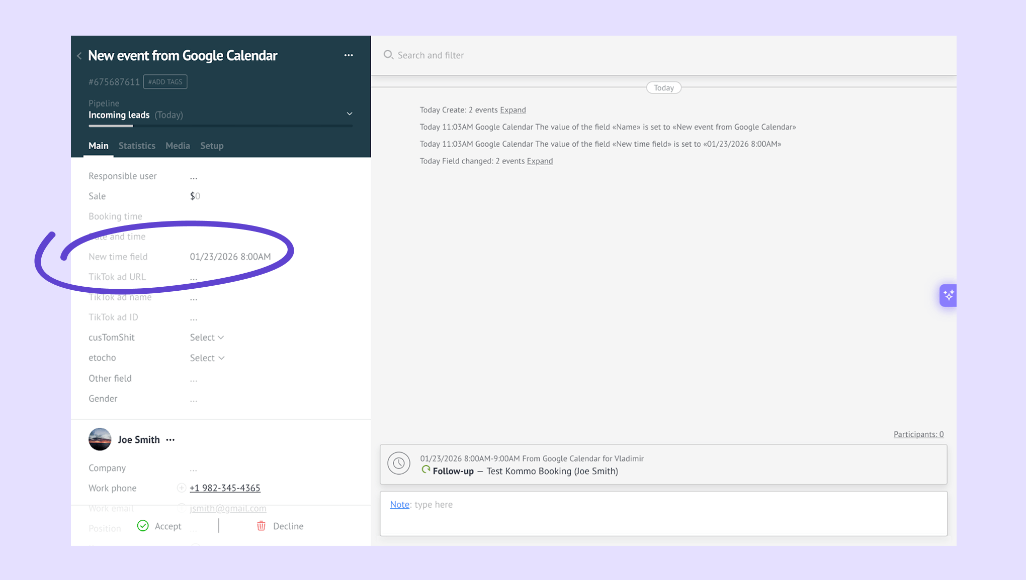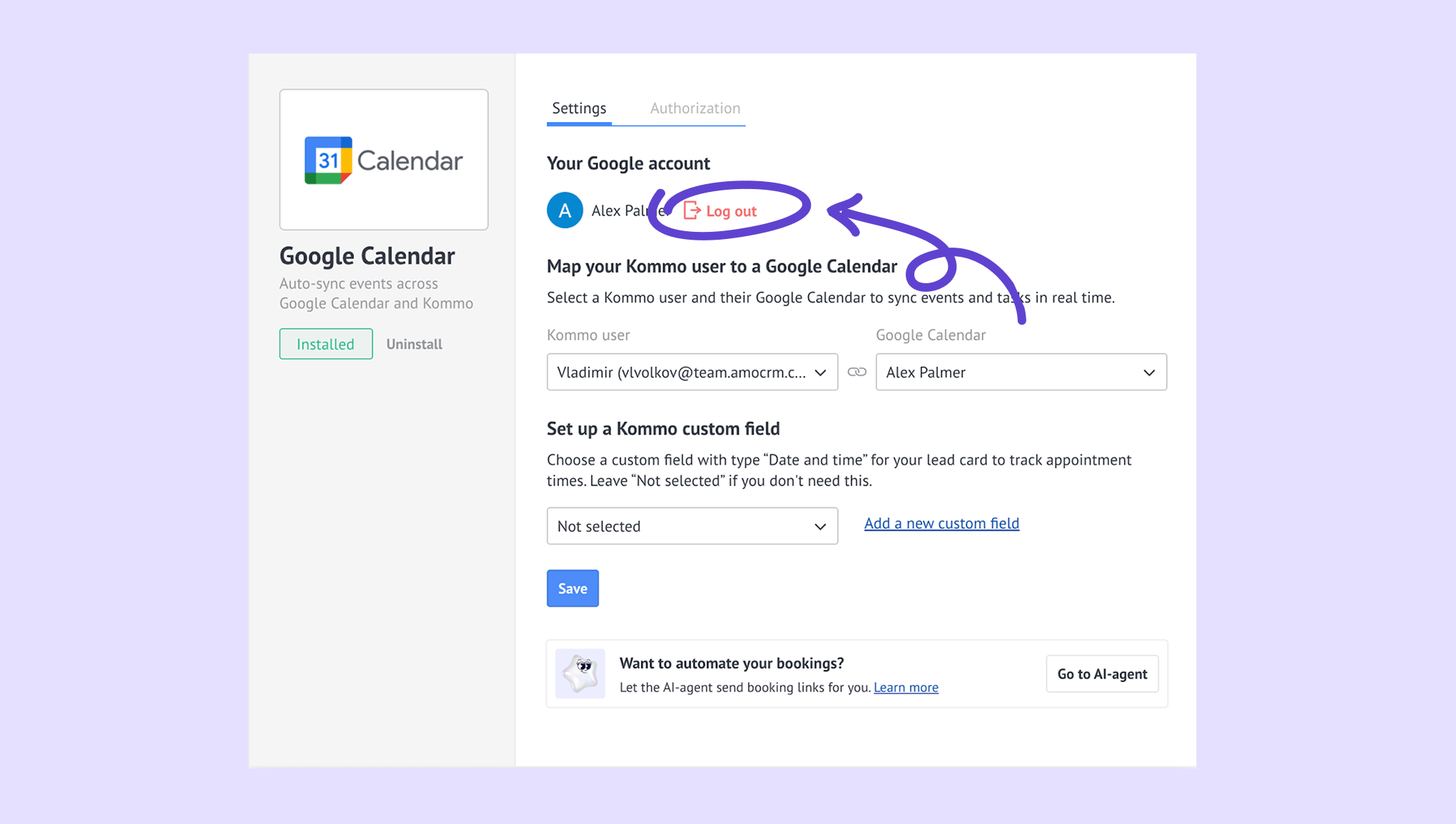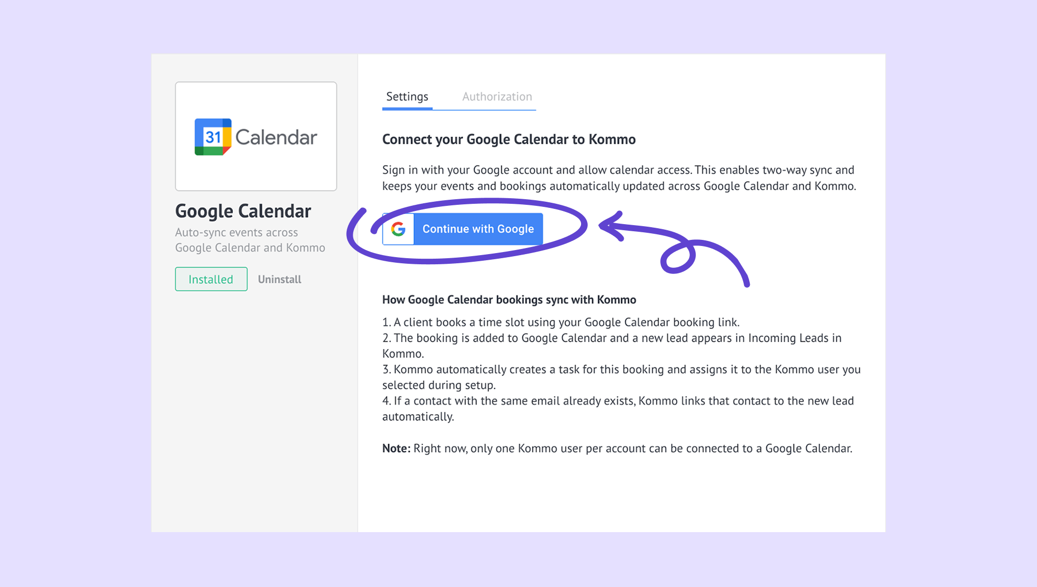 Connect Google Calendar to Kommo