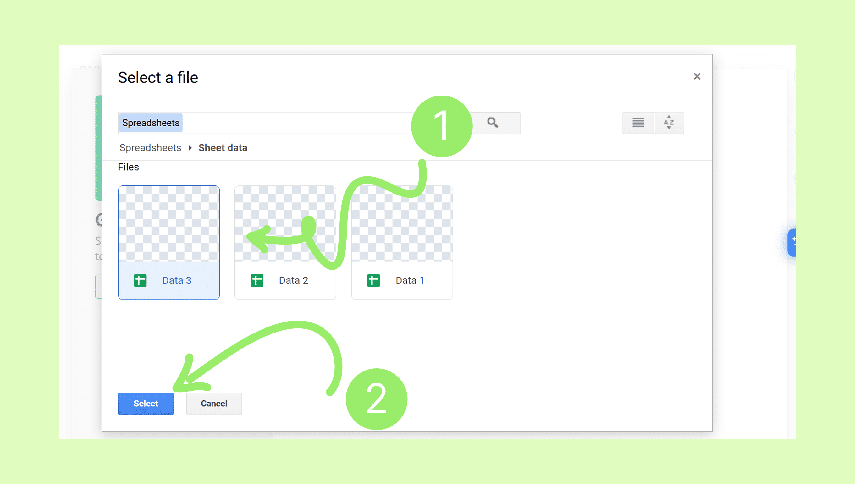 1. Click on your desired sheet and then click Select.