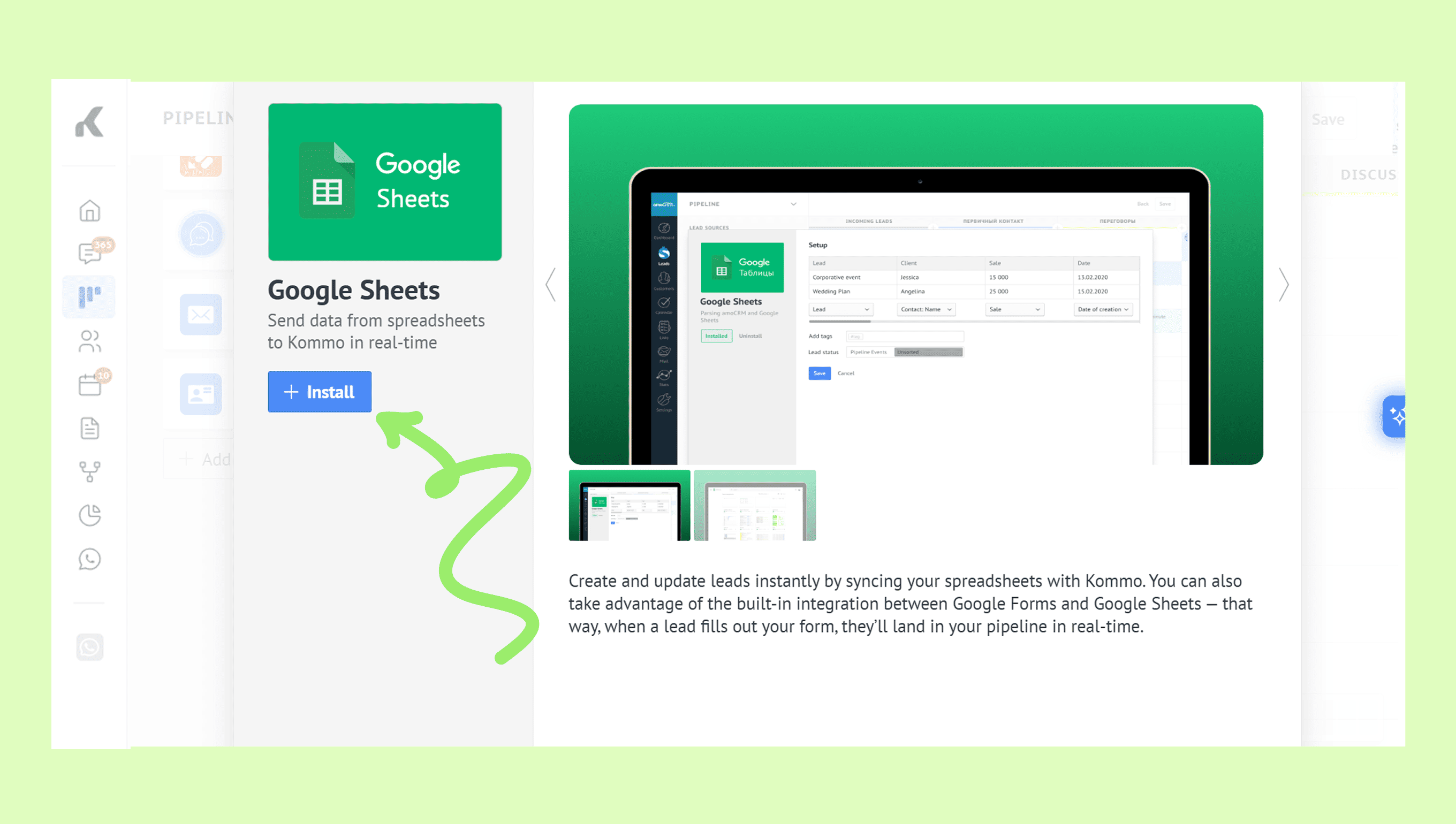 Connect Google Sheets to Kommo