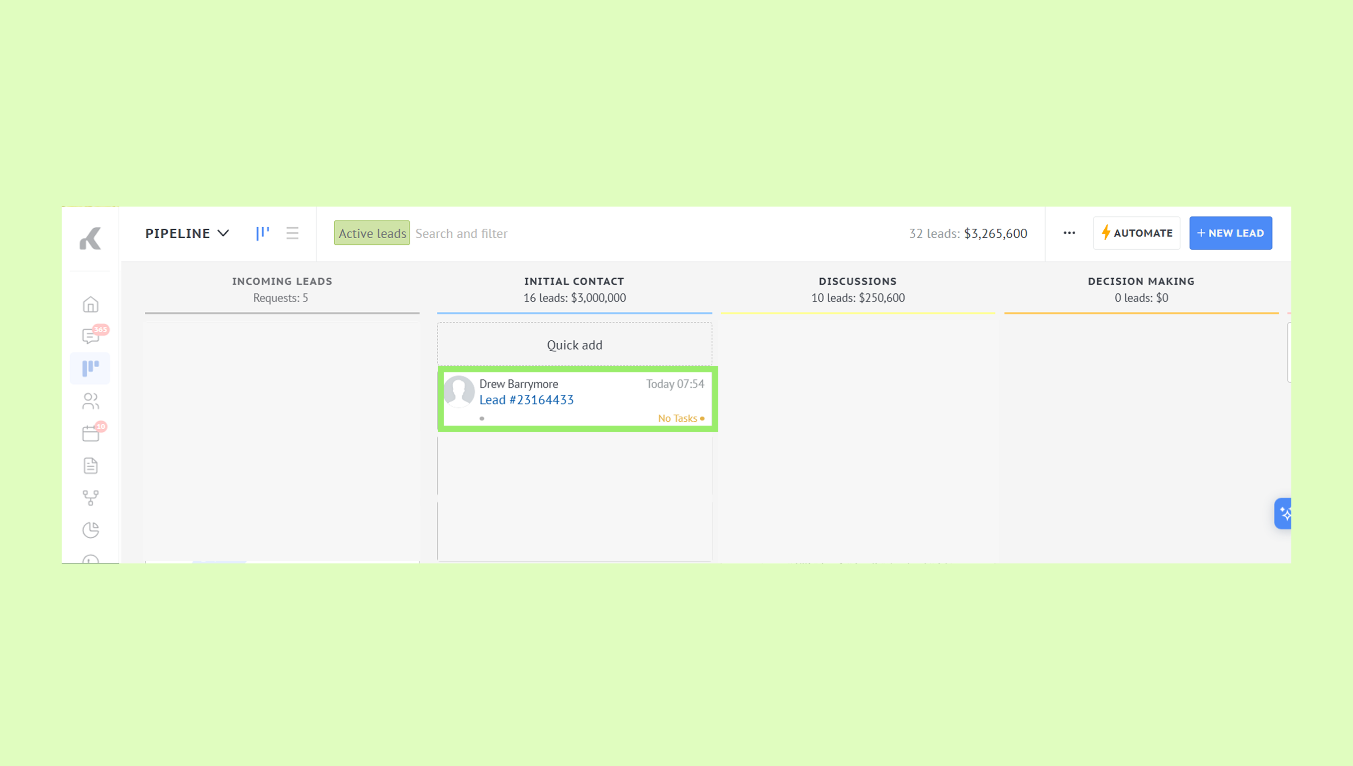- The client who responds in Google Forms becomes a new lead in Kommo: