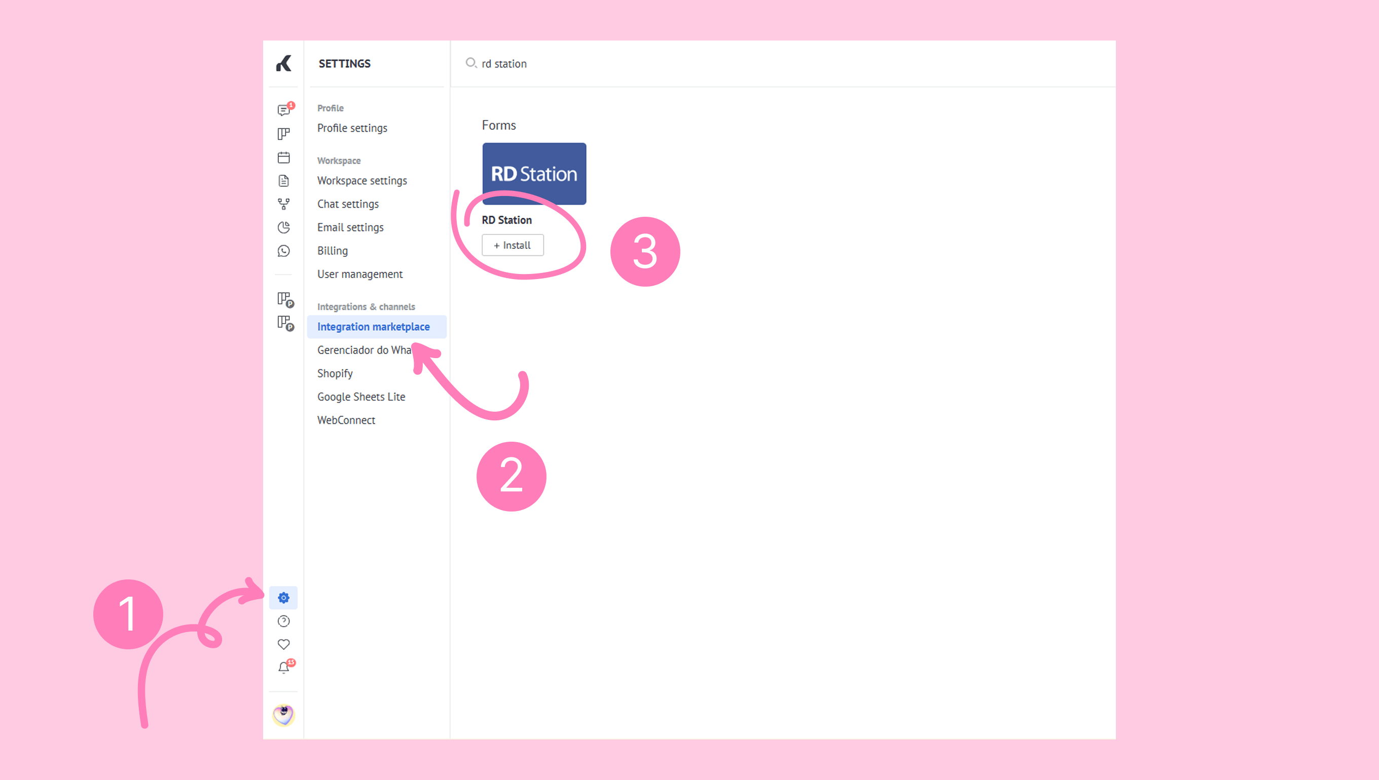 1. In Kommo, go to Settings → Integration markeplace → search for RD Station.