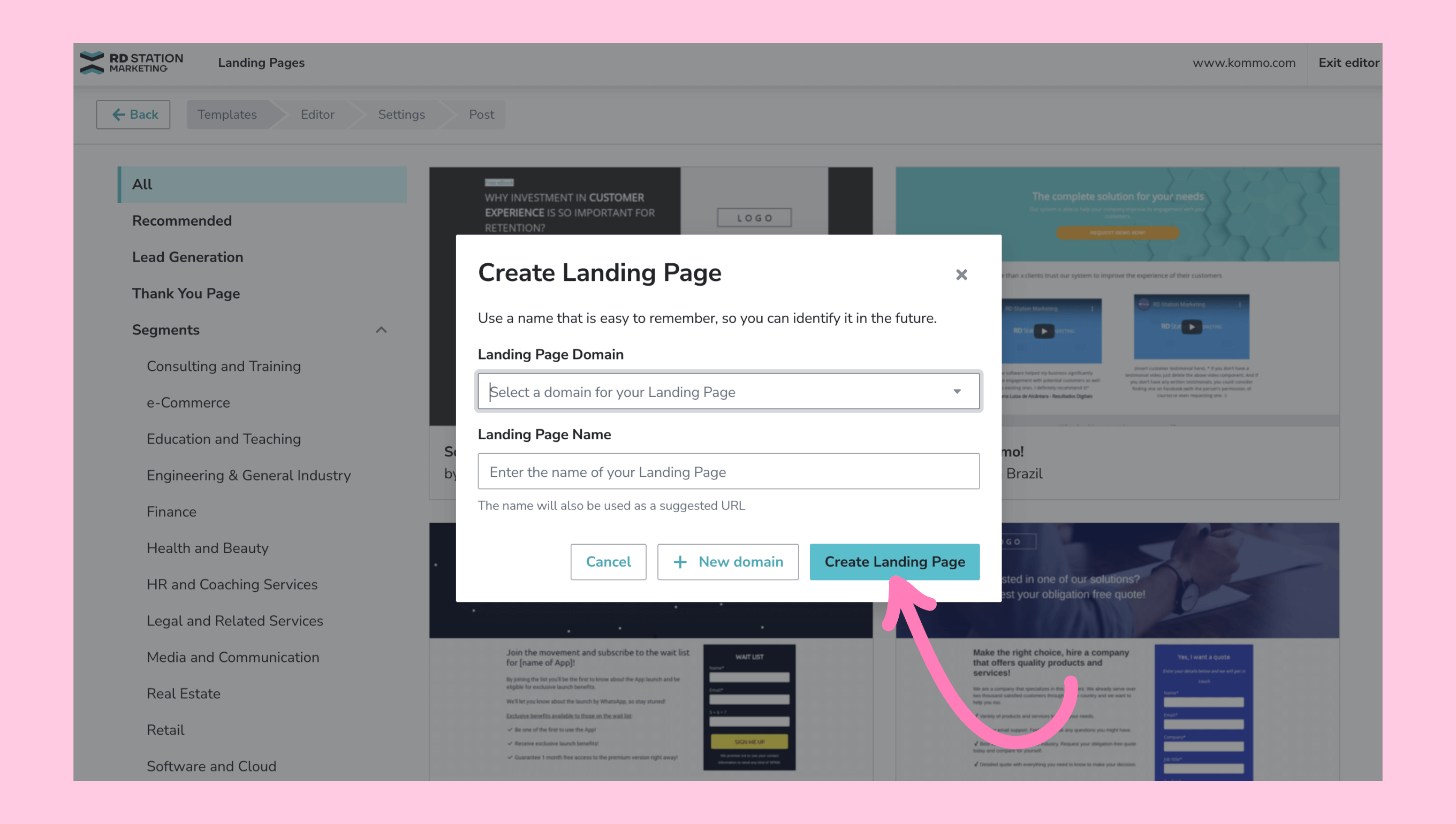 First, you have to create a landing page for your business. To do so, follow these steps: