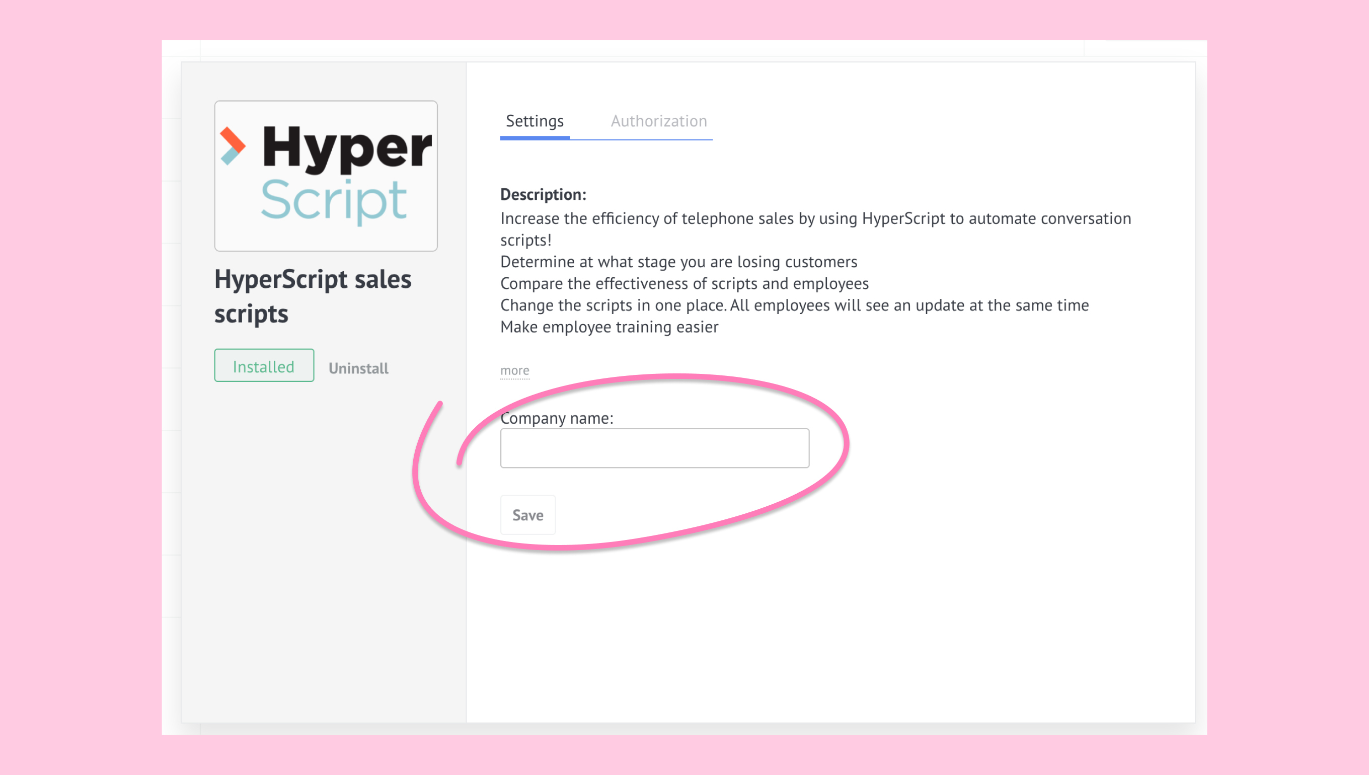 - Open any lead in your pipeline. The installed HyperScript widget will appear in the top right panel. Enter your HyperScript login and password to link your accounts.