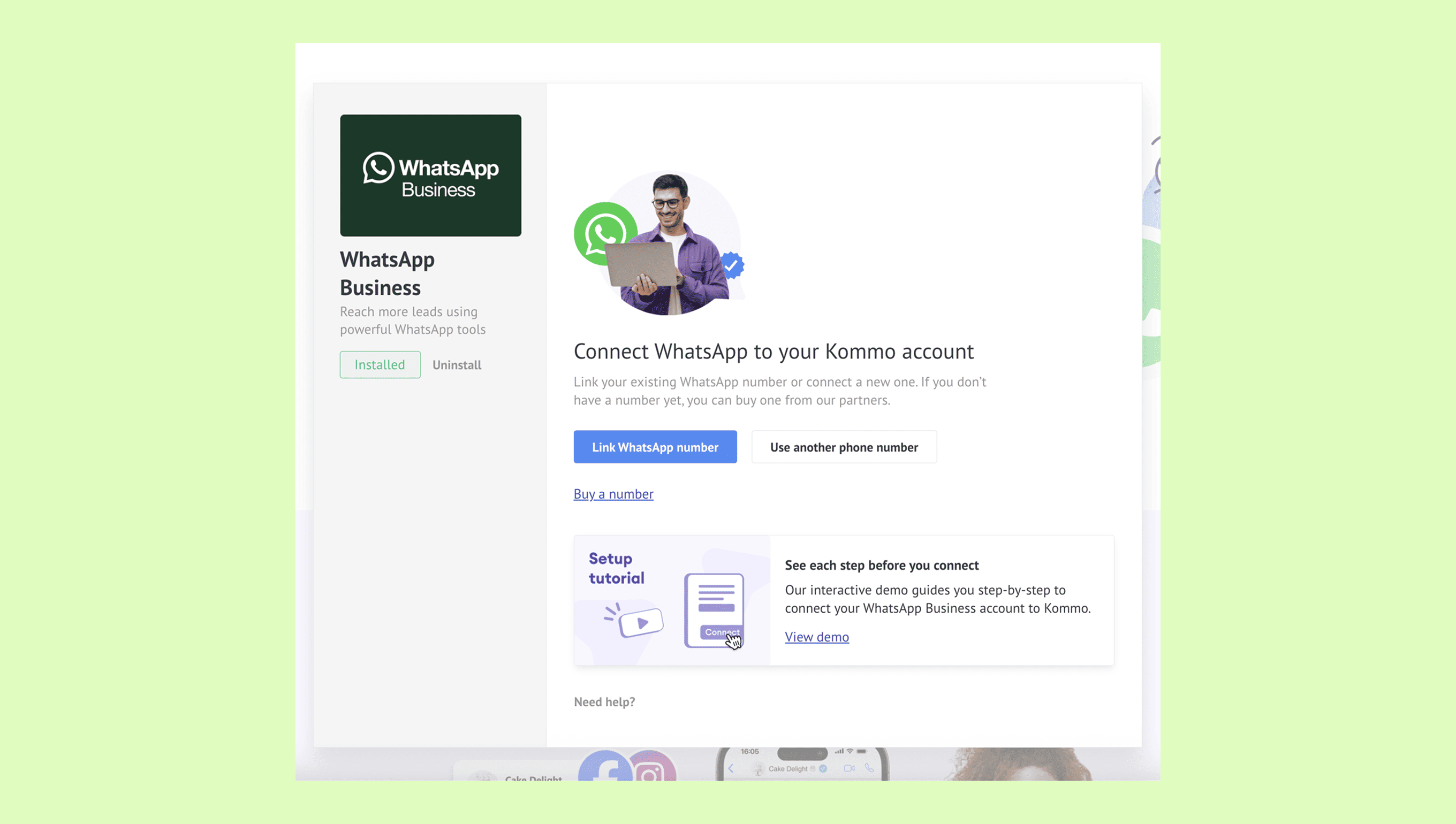 • An active WhatsApp Business integration in Kommo. See how to connect WhatsApp Business.