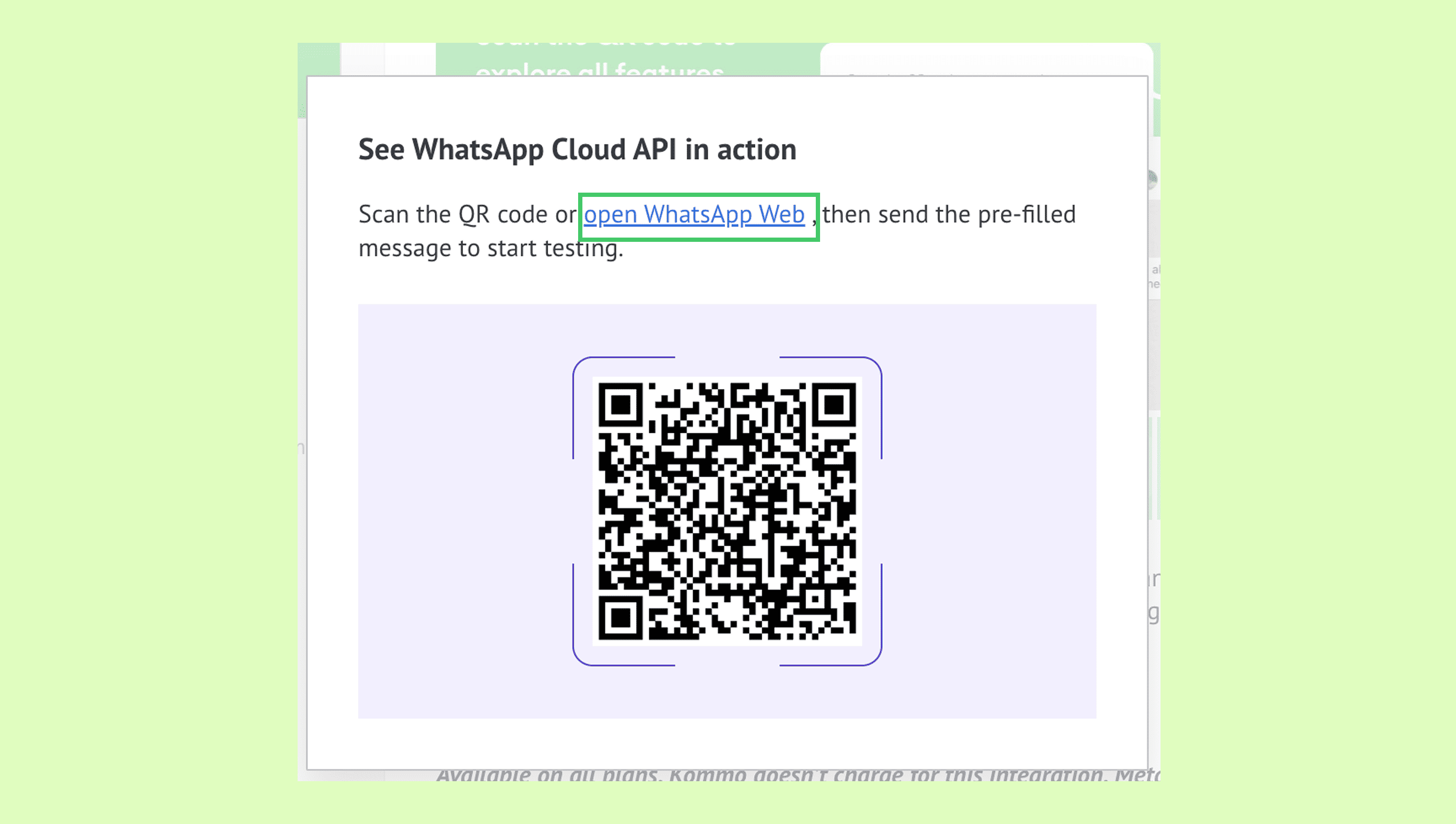 Go to the left menu → WhatsApp → Click Test WhatsApp .