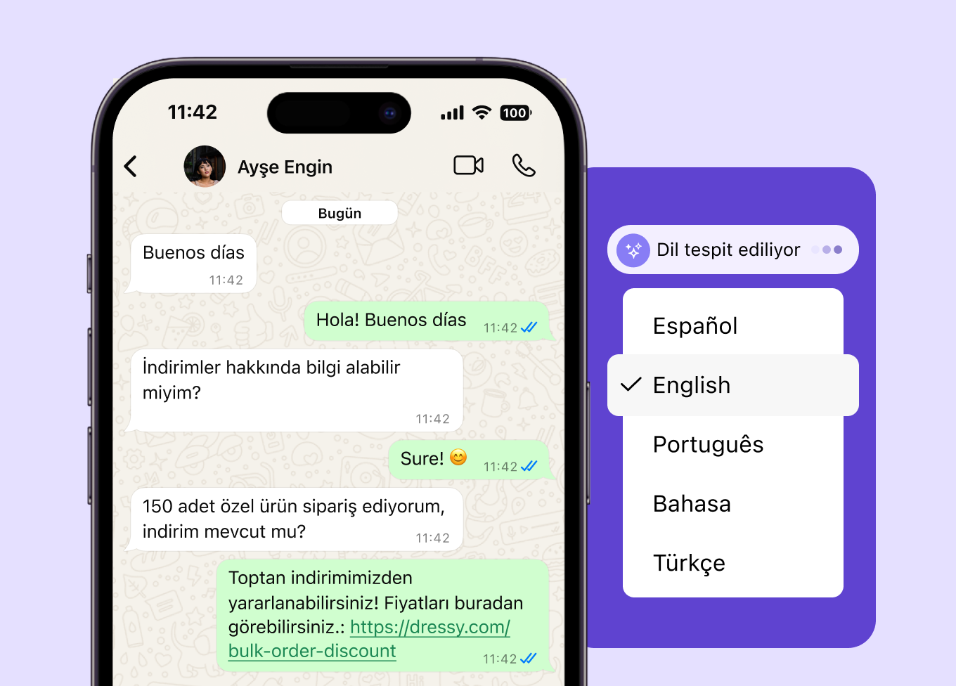 Çoklu dil desteği: Müşterilerinizin kullandığı dilde algılar ve yanıtlar, doğal ve bağlama uygun cevaplar verir.