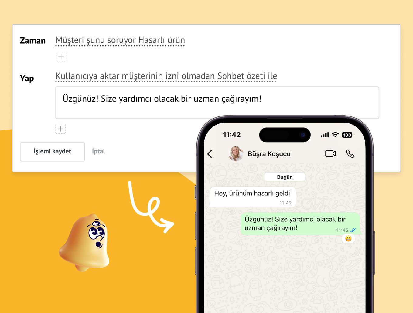 Harekete geçer: Temsilci yanıt verir, takip soruları sorar, otomasyonları tetikler veya CRM kayıtlarını günceller.