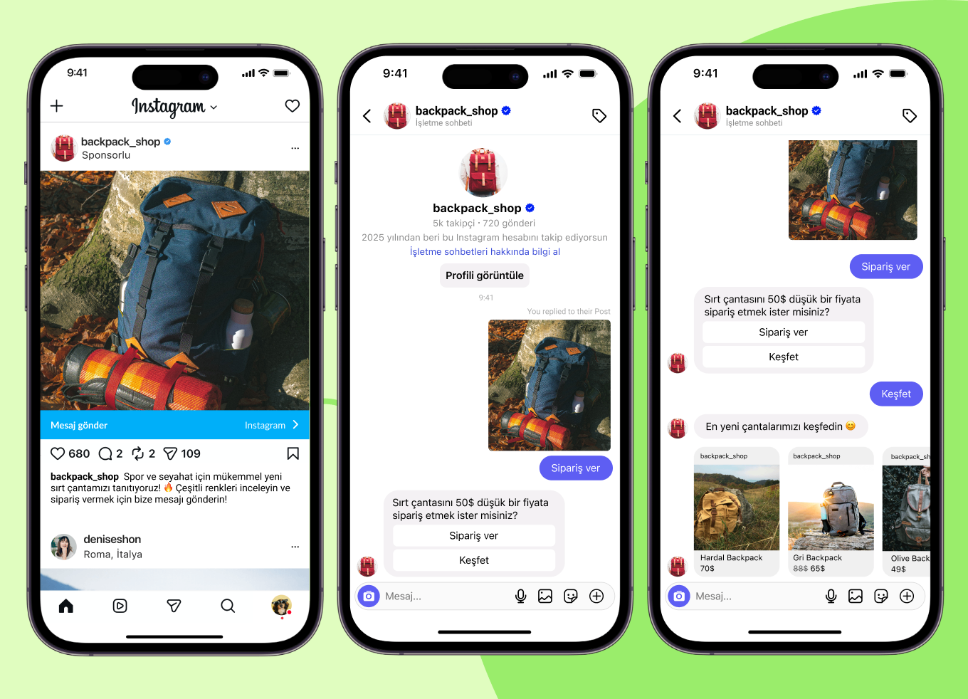 Bir kullanıcı “Altın kolye satıyor musunuz?” şeklinde bir DM gönderir.