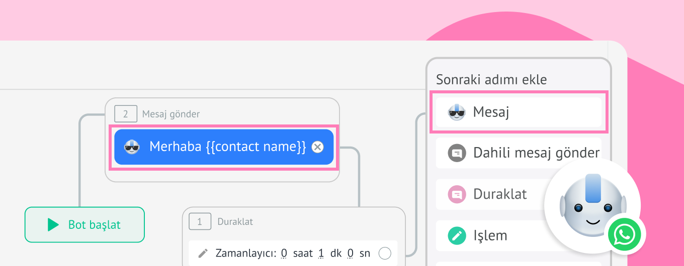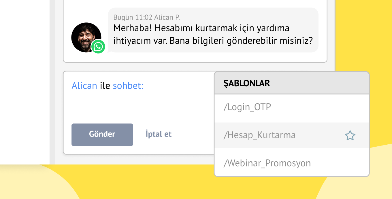 Büyük ölçekte kişiselleştirme: Şablonlar değişkenleri destekler, böylece mesajları isimler, kodlar veya diğer kullanıcıya özgü verilerle kişiselleştirebilir ve otomatik akışlarda bile kişisel bir dokunuş sağlayabilirsiniz. -