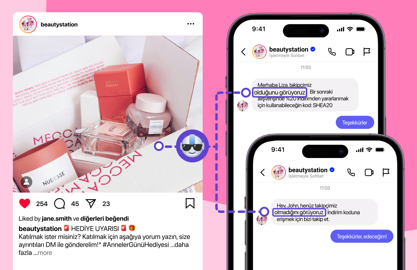- Takipçi durumunu kontrol edin ve kişiselleştirilmiş yanıtlar gönderin.