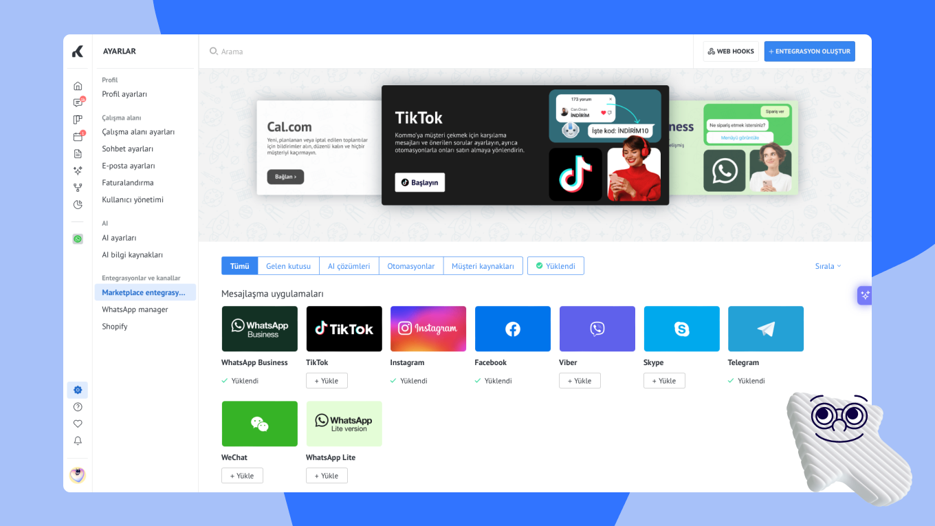 - Mesajlaşma ve arama entegrasyonları