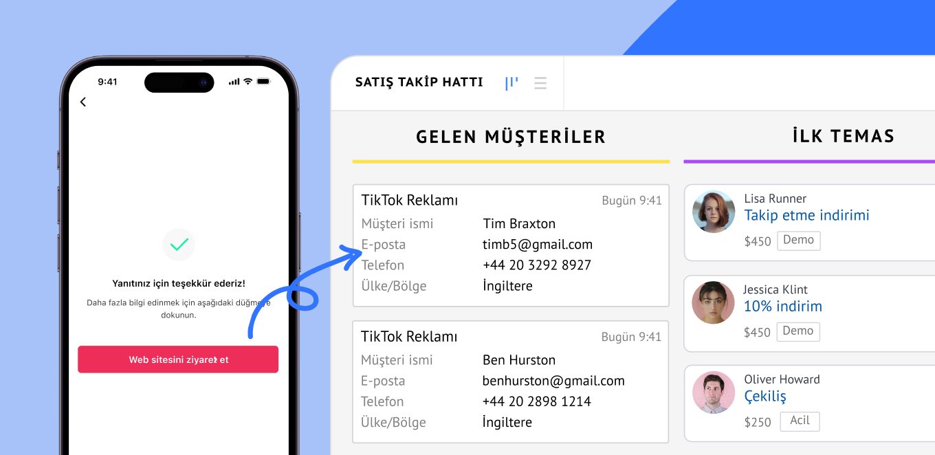 TikTok Reklam Yöneticisi'ni bir CRM'e bağlayarak şunları yapabilirsiniz: