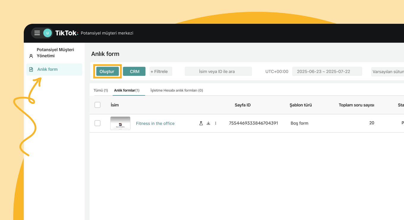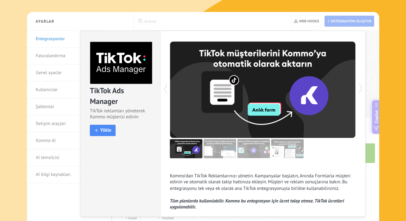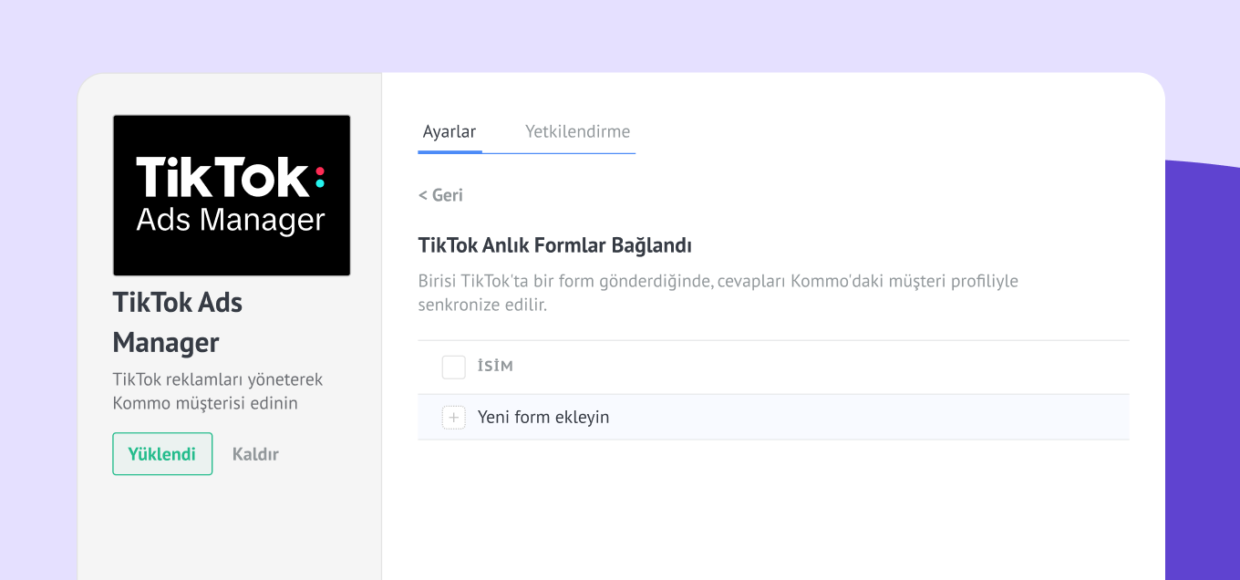 TikTok Anlık Formları Kommo müşteri kartınızla senkronize edin.