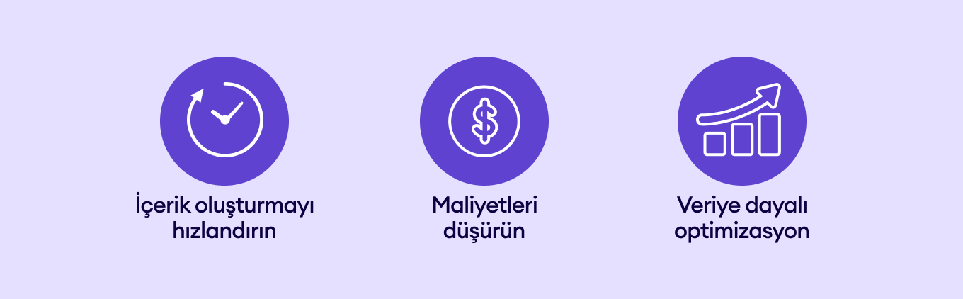 Metni videoya ve fotoğrafı videoya dönüştürme gibi yapay zeka destekli araçlar, üretim süresini önemli ölçüde kısaltarak kampanyalarınızı daha hızlı başlatmanıza ve satış huninizi akıcı tutmanıza olanak tanır.