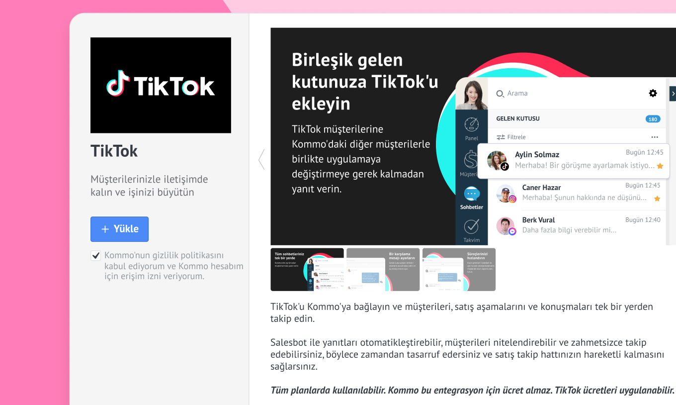 TikTok ve Kommo'yu bugün deneyin ⚡