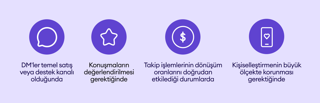 - DM'ler ve sohbetler satış veya destek sürecinin merkezindeyse