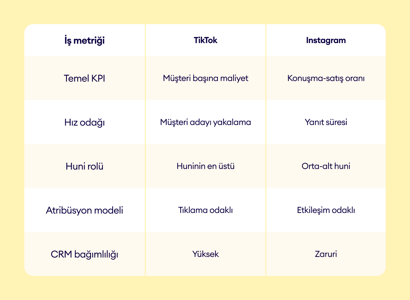 İş metrikleri karşılaştırması: TikTok ve Instagram