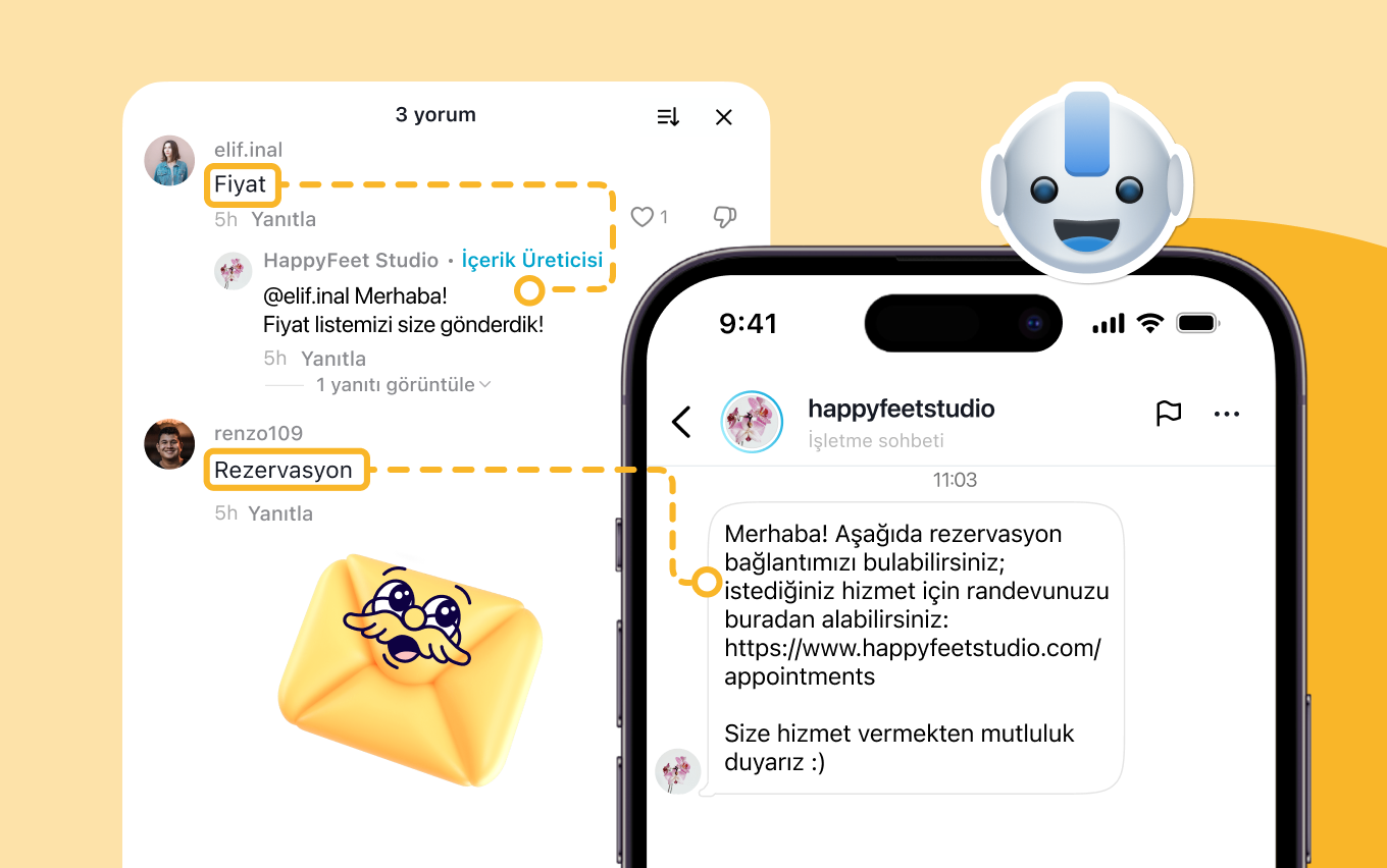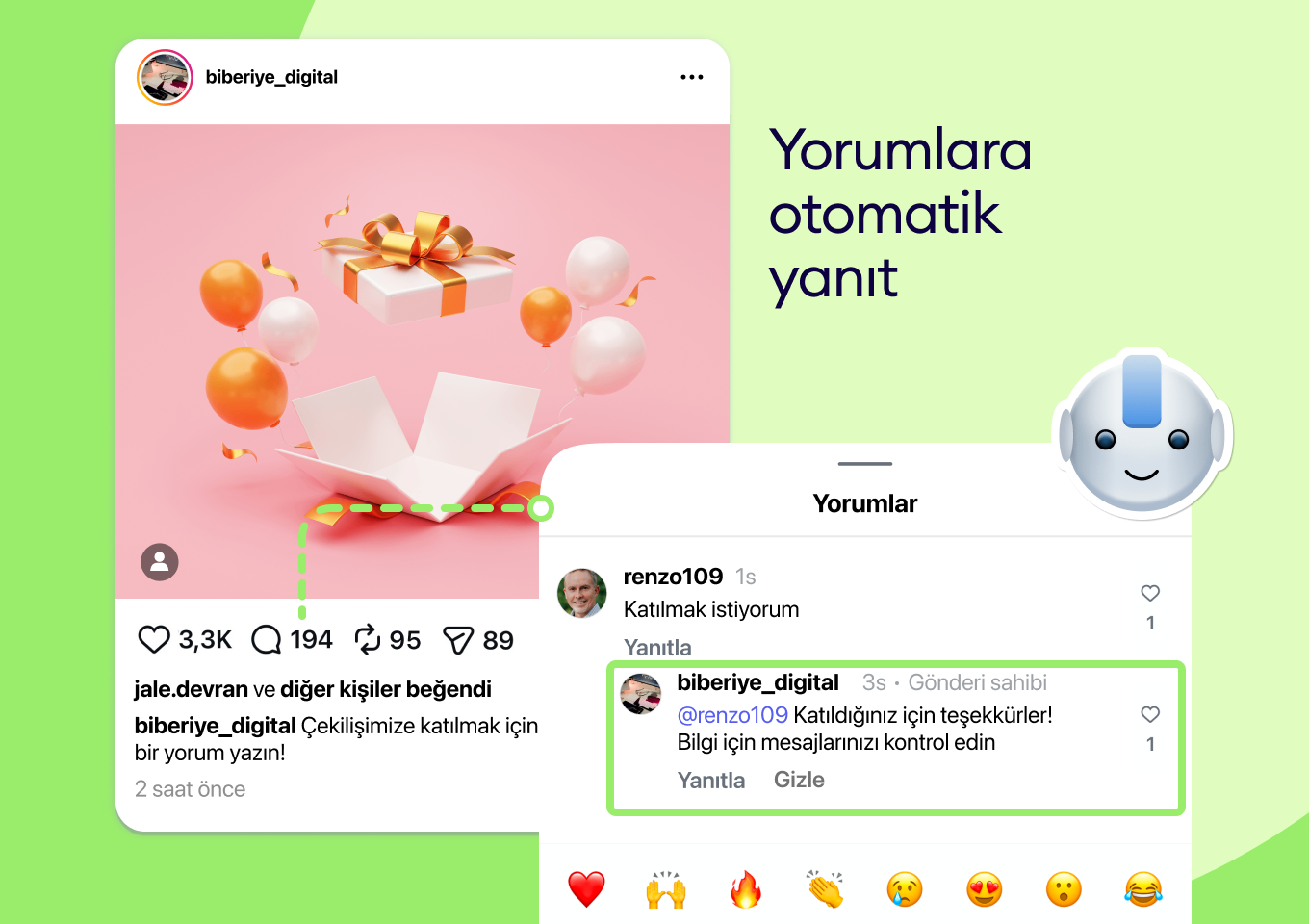 Otomatik yanıtlar sayesinde herkese açık yorumları anında özel sohbetlere dönüştürün.