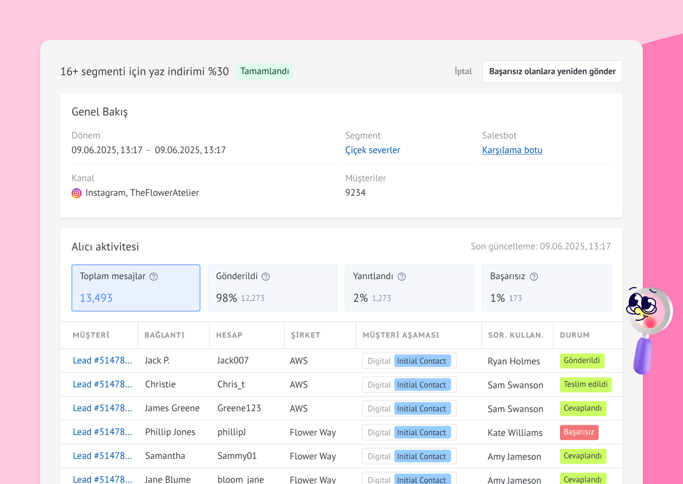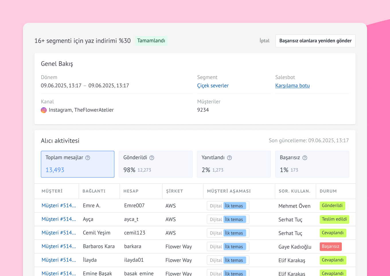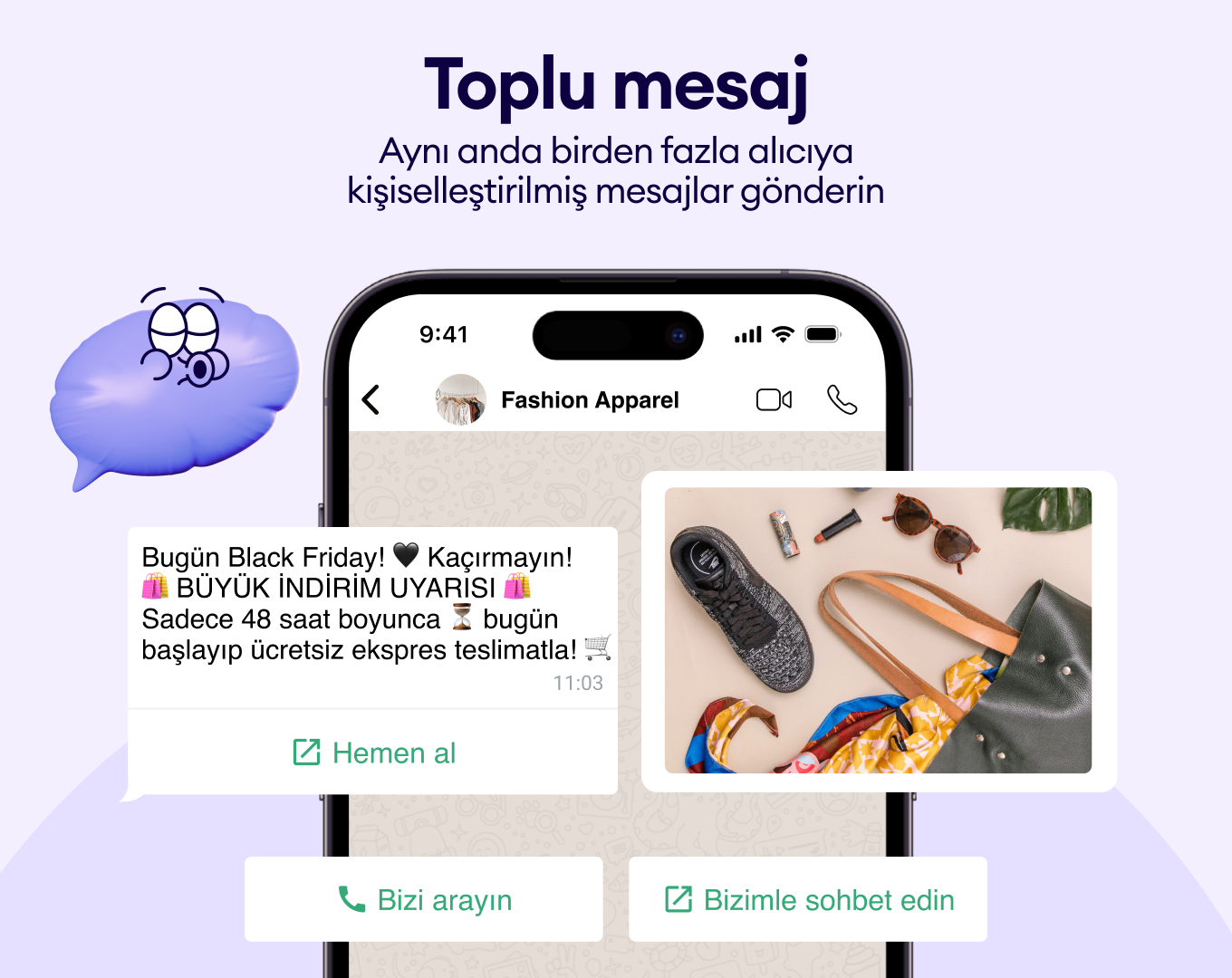 Verimlilik ve izleme özelliklerini bir araya getiren toplu mesajlar, işletmelerin ilişkilerini güçlendirmesine, etkileşimi artırmasına ve etkileşimleri somut sonuçlara dönüştürmesine yardımcı olur.