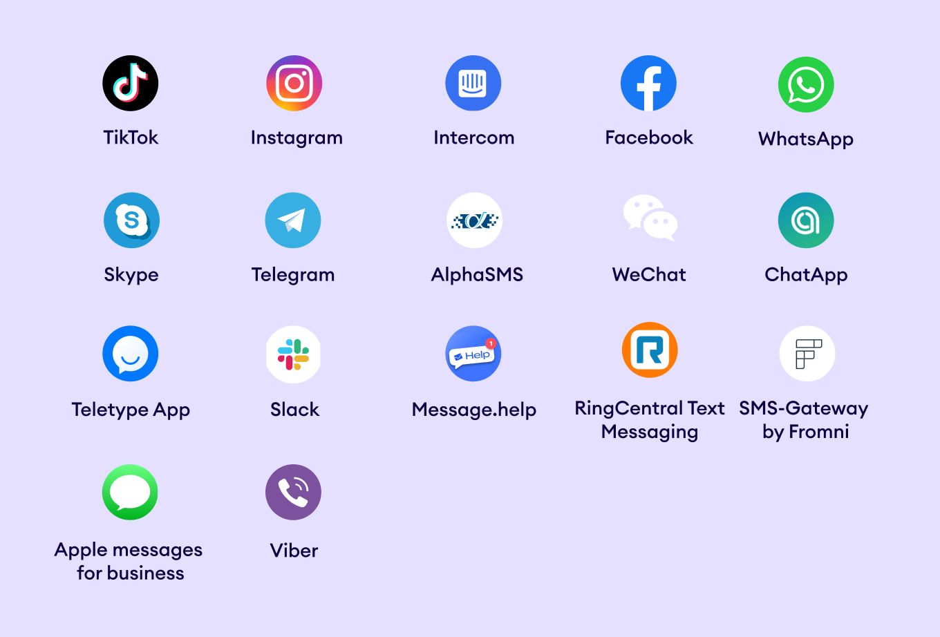 WhatsApp, Instagram, Facebook, Telegram, Viber ve daha fazlasını uygulamalar arasında geçiş yapmadan Kommo'dan iletişim kurun.