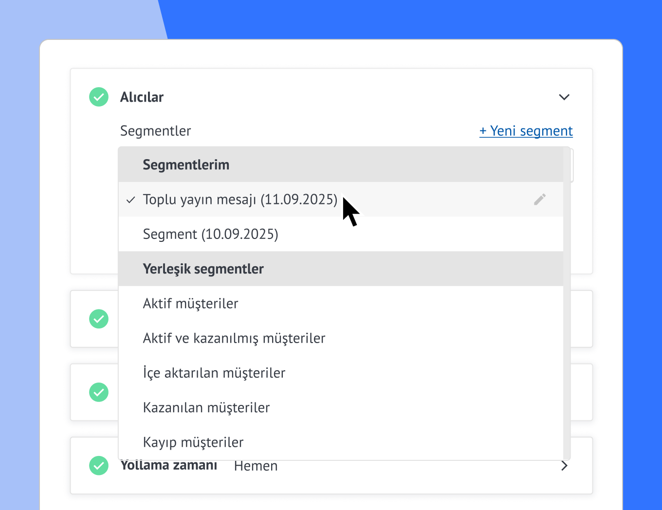 Birden fazla mesaj segmenti oluşturarak hedef kitlenizi hassas bir şekilde ayarlayın.