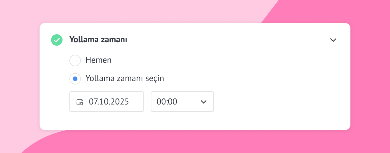 Mesajınızı şimdi mi yoksa daha sonra mı göndermek istediğinize karar verin. Kommo, göndermeden önce müşteri sayısını ve planlanan zamanı onaylayacaktır.