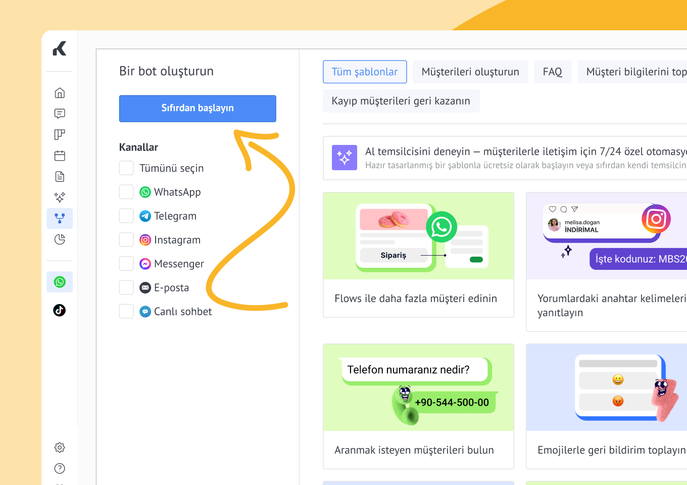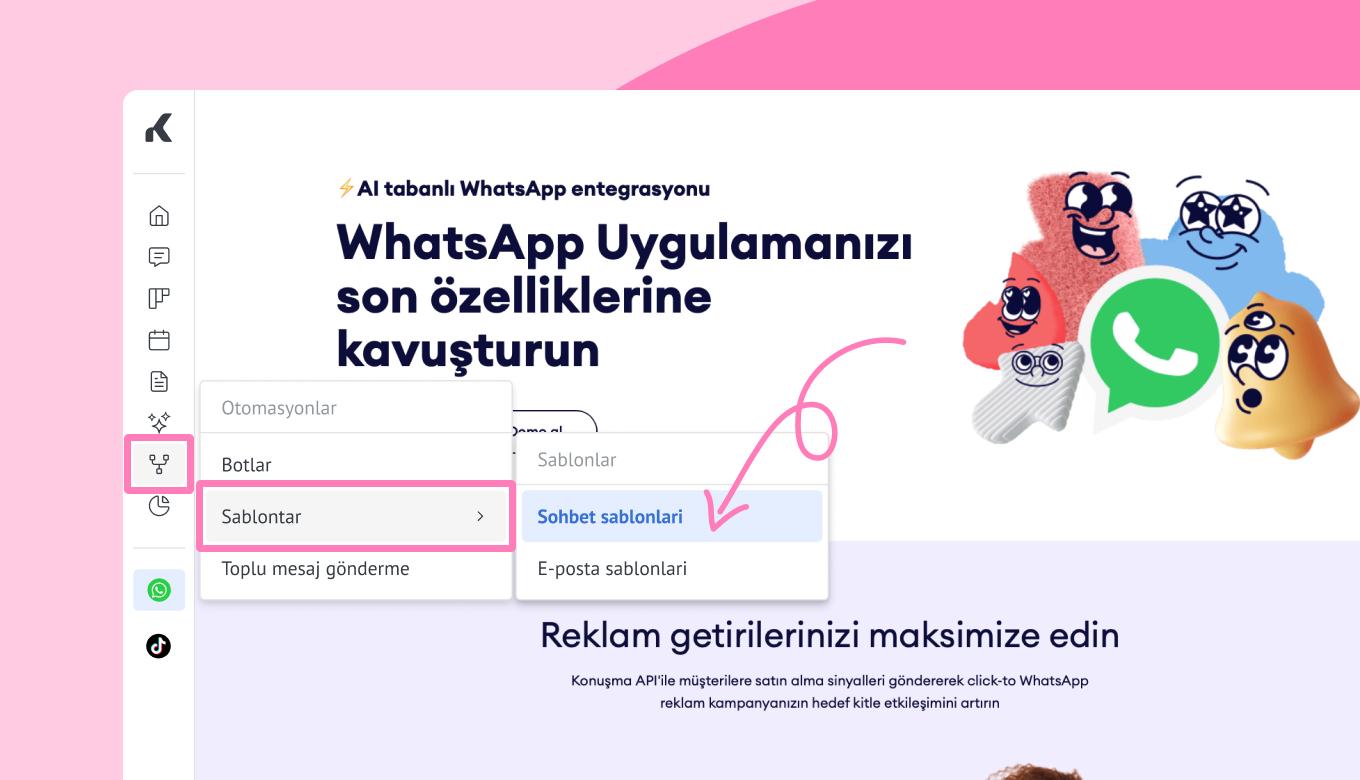 1. WhatsApp > Şablonlar ve Botlar'a gidin.
