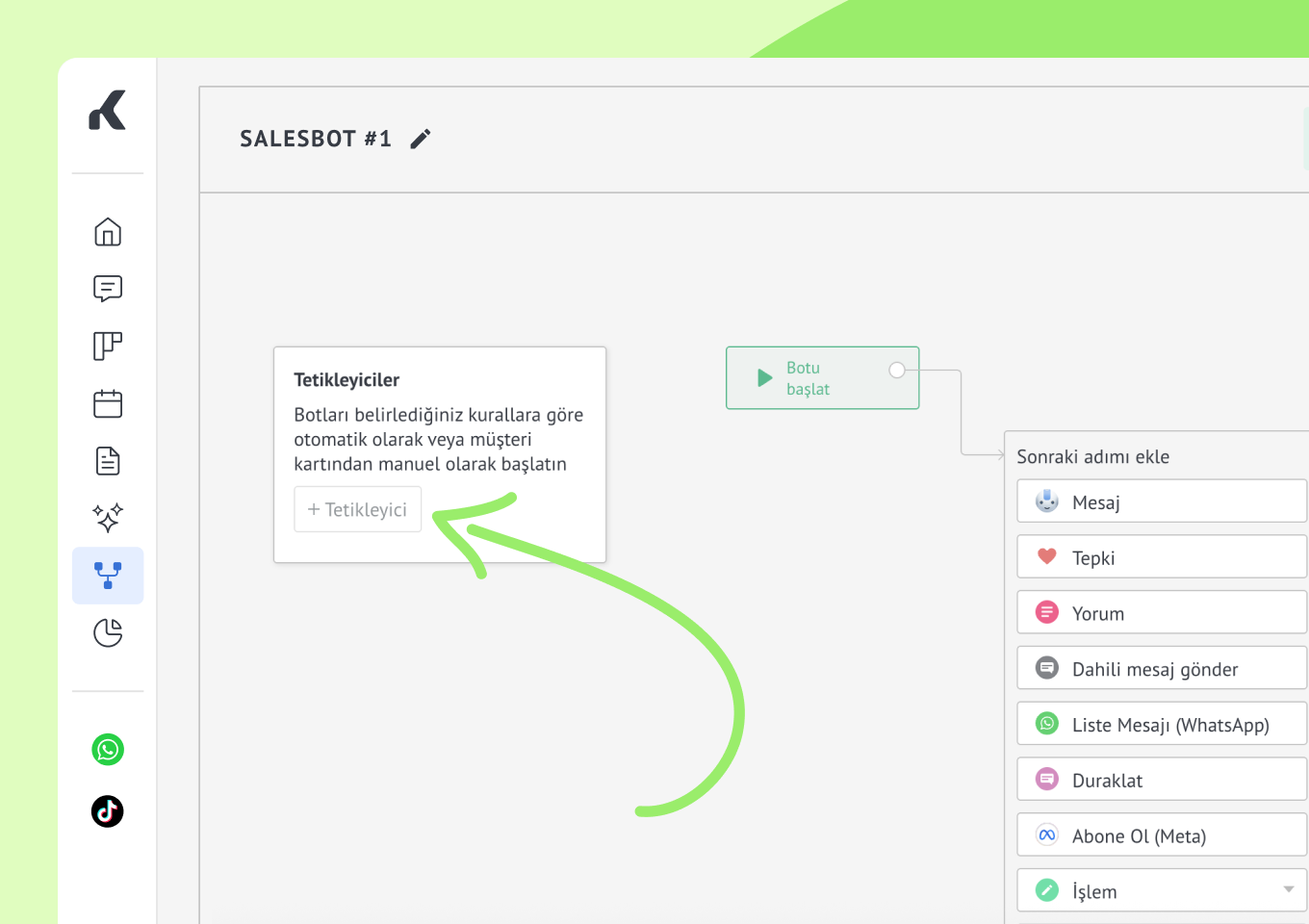 1. Salesbot oluşturma sayfası açılır ve tetikleyici düğmesine tıklarsınız.