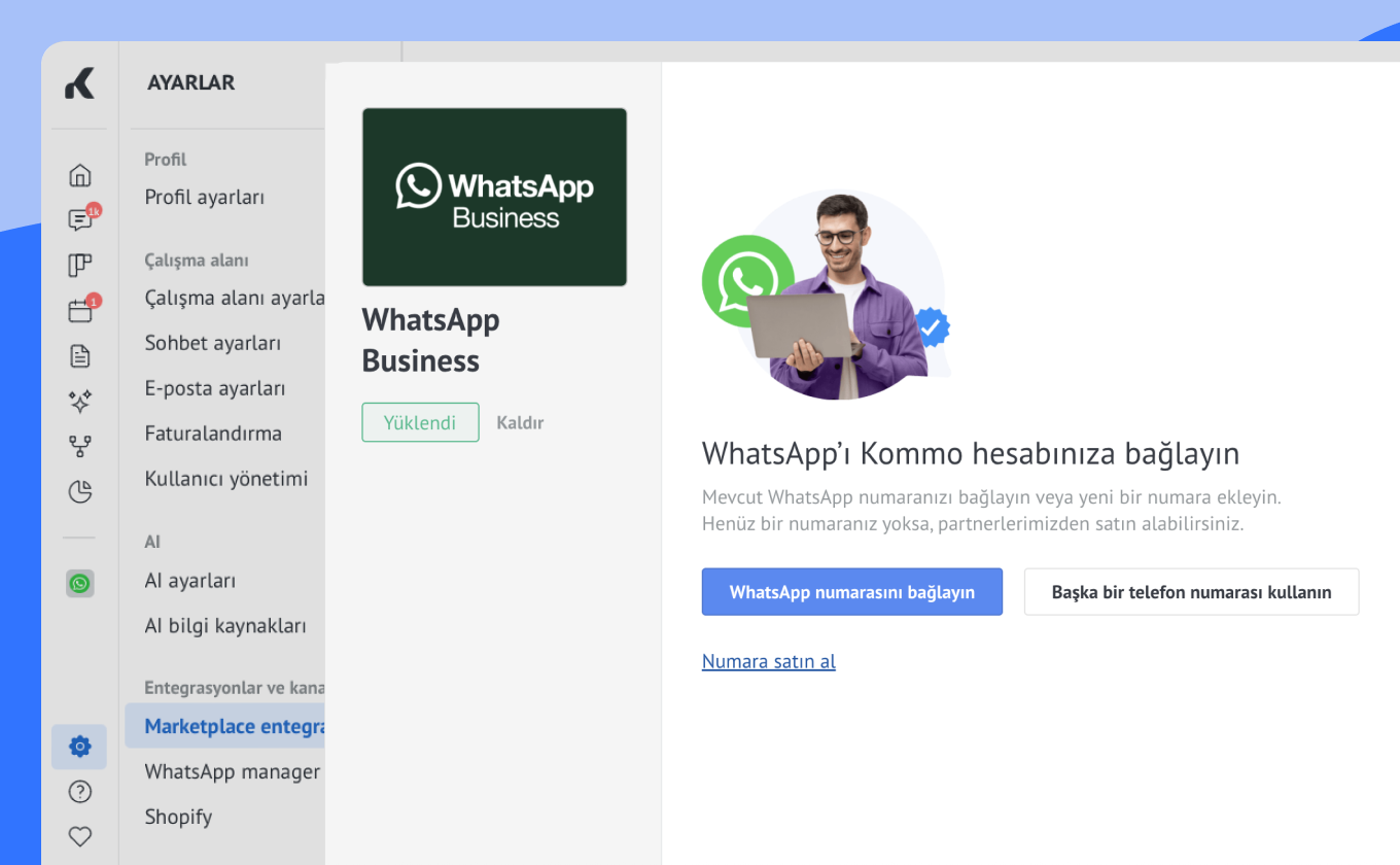 1. Kommo'ya WhatsApp Business entegrasyonunu yükleyin