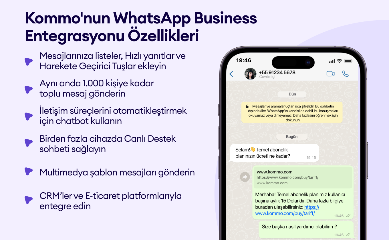 İşte Kommo'nun WhatsApp Business entegrasyonunun diğer faydaları 👇