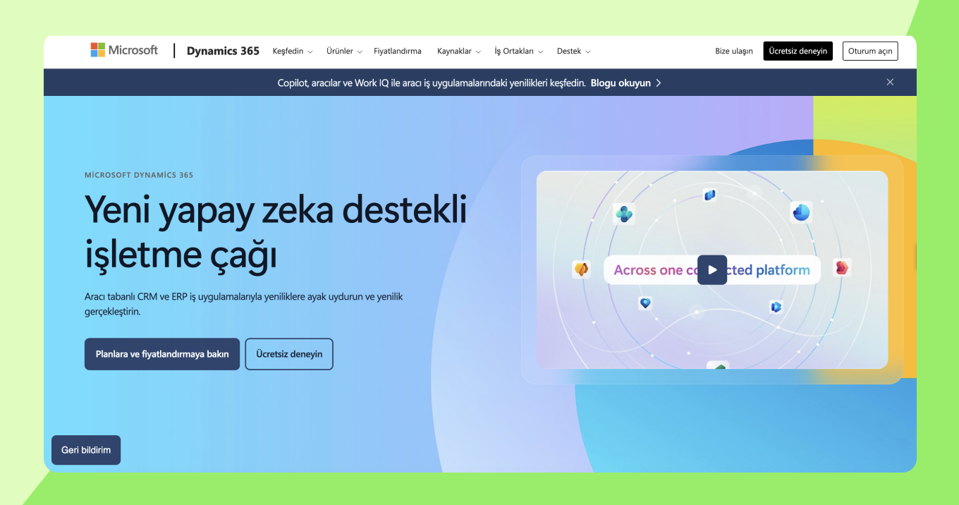 Microsoft Dynamics 365 Sales, Copilot'u kullanarak satış, pazarlama ve hizmet iş akışlarına yapay zeka entegre eder.