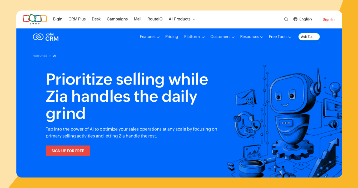 6. Zoho CRM (Zia AI)