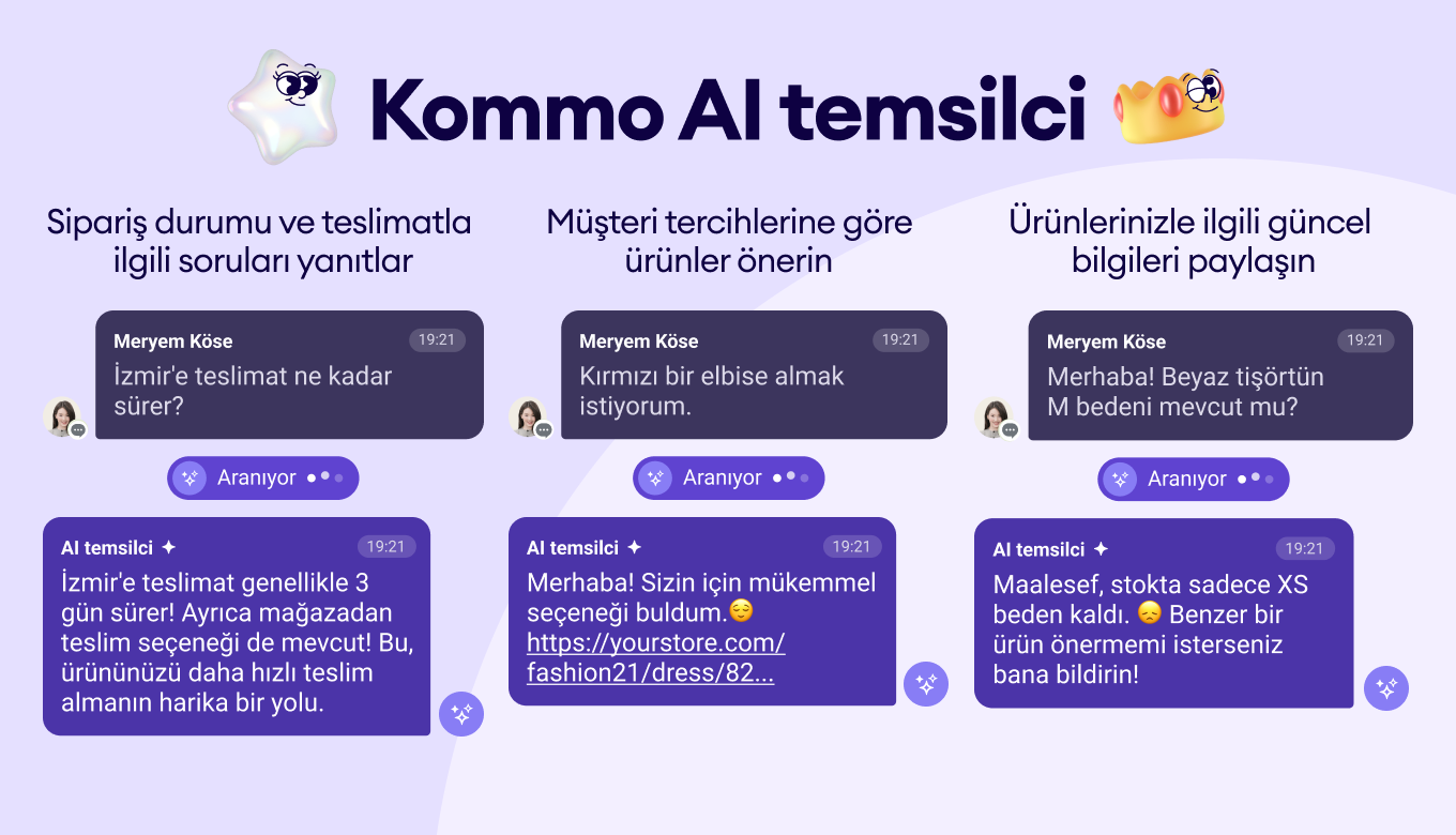 En büyük fark ne mi? Gerçek bir yapay zeka satış danışmanı sadece ekibinize yardımcı olmakla kalmaz, aynı zamanda özerk bir şekilde hareket eder. Kommo AI temsilcisi, sohbet tabanlı AI, satış takip hattı otomasyonu, çok kanallı mesajlaşma ve CRM tabanlı mimariyi tek bir birleşik sistemde birleştirmesiyle öne çıkar.