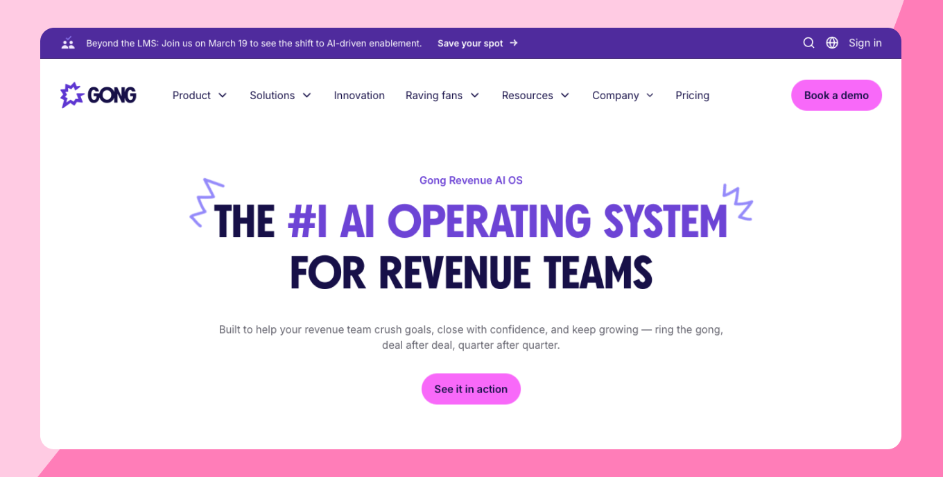 Gong, aramaları, e-postaları ve toplantıları analiz ederek satış görüşmelerini uygulanabilir öngörülere dönüştürür.
