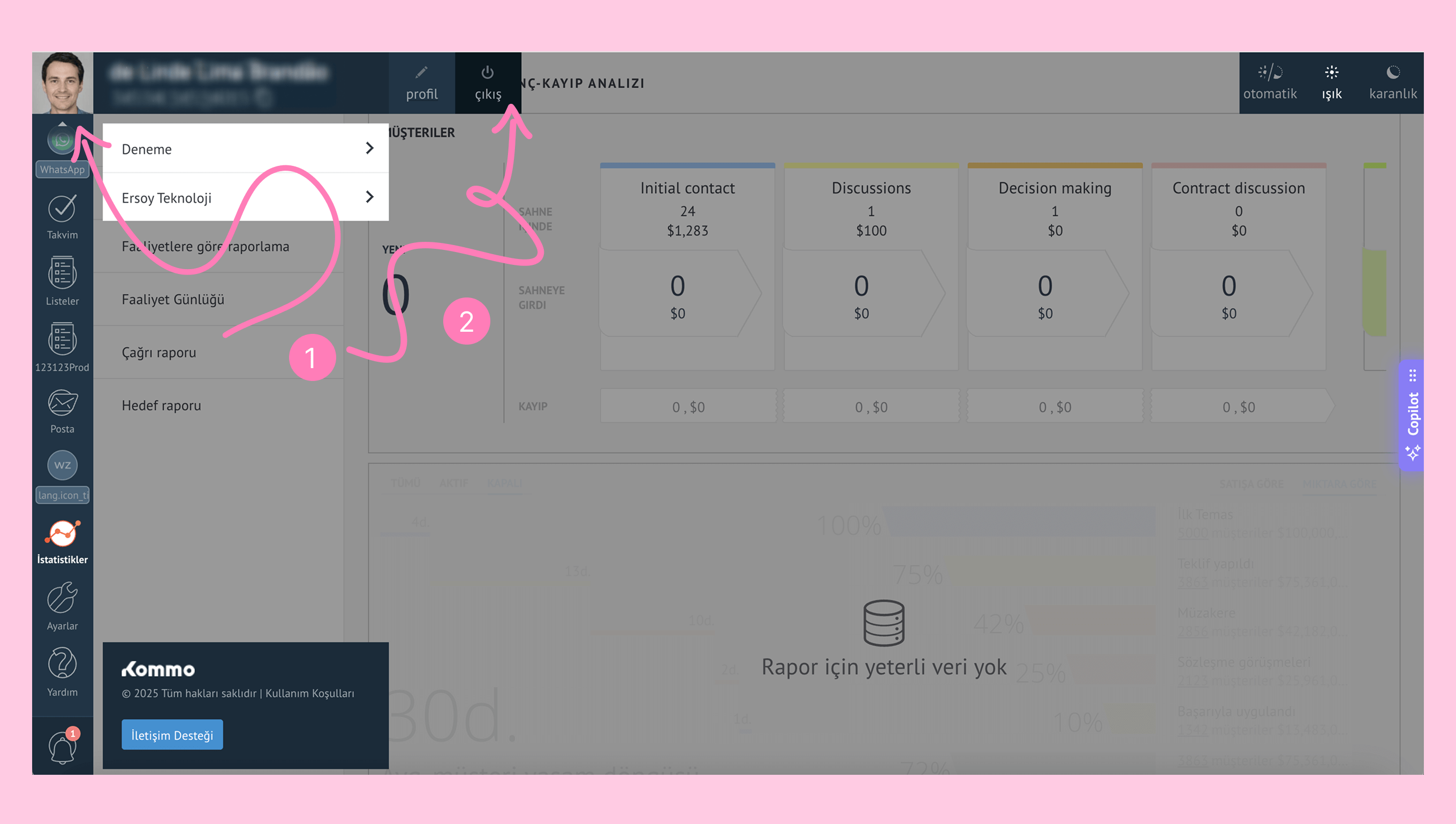 Kommo'nun içindeyken çıkış yapmanın ikinci yolu şudur: