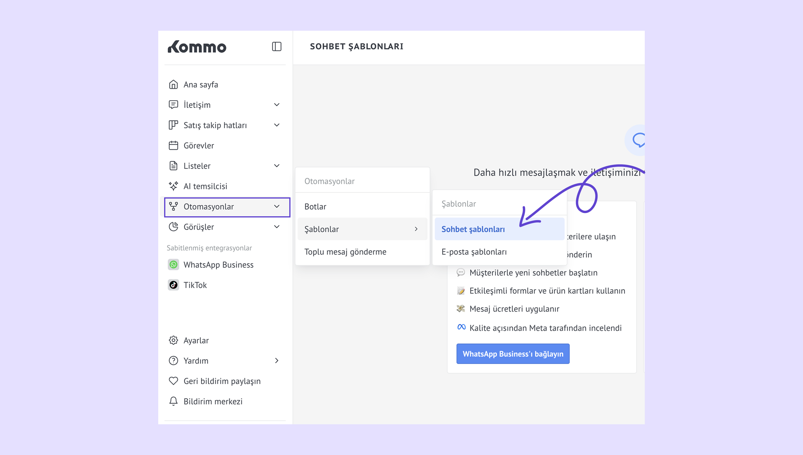 Botlar – rutin görevleri yönetmek ve müşterileri satış sürecinde yönlendirmek için otomatik akışlar oluşturun. -