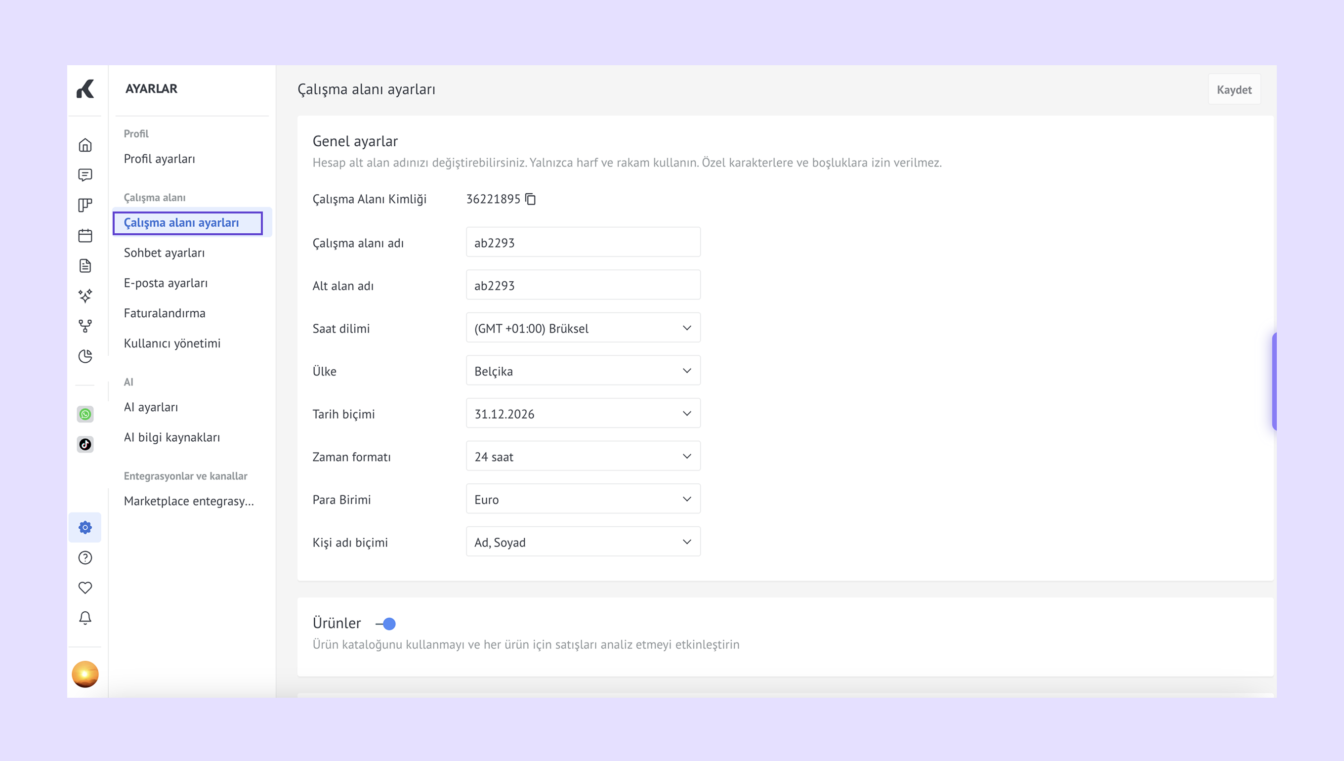 Çalışma alanı ayarları (önceki adıyla Genel ayarlar) – çalışma alanınızı ekibinizin ihtiyaçlarına göre özelleştirin. -