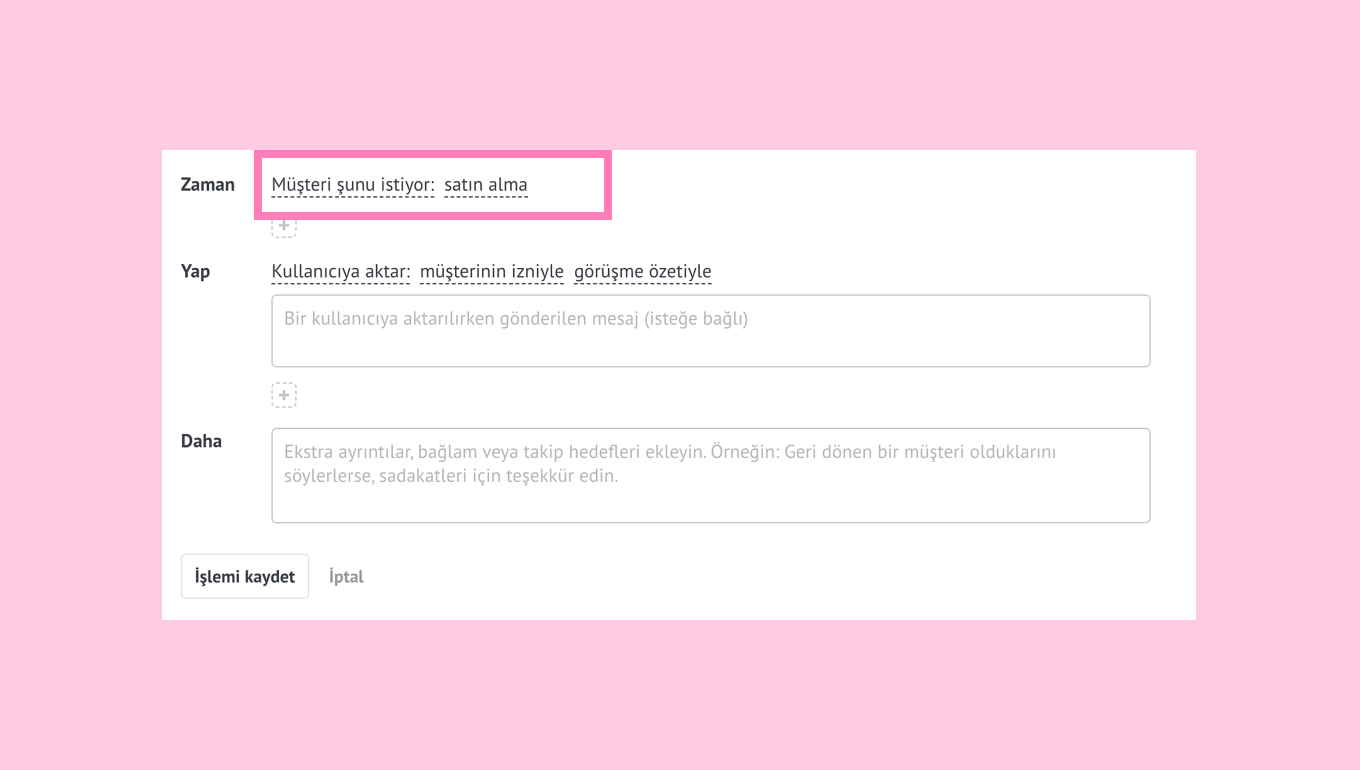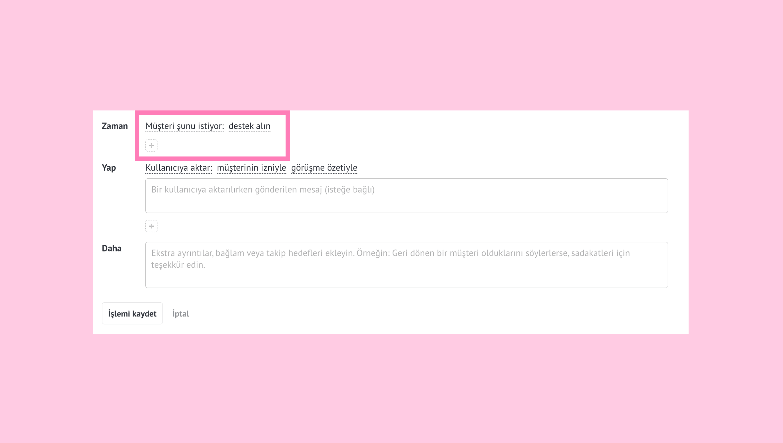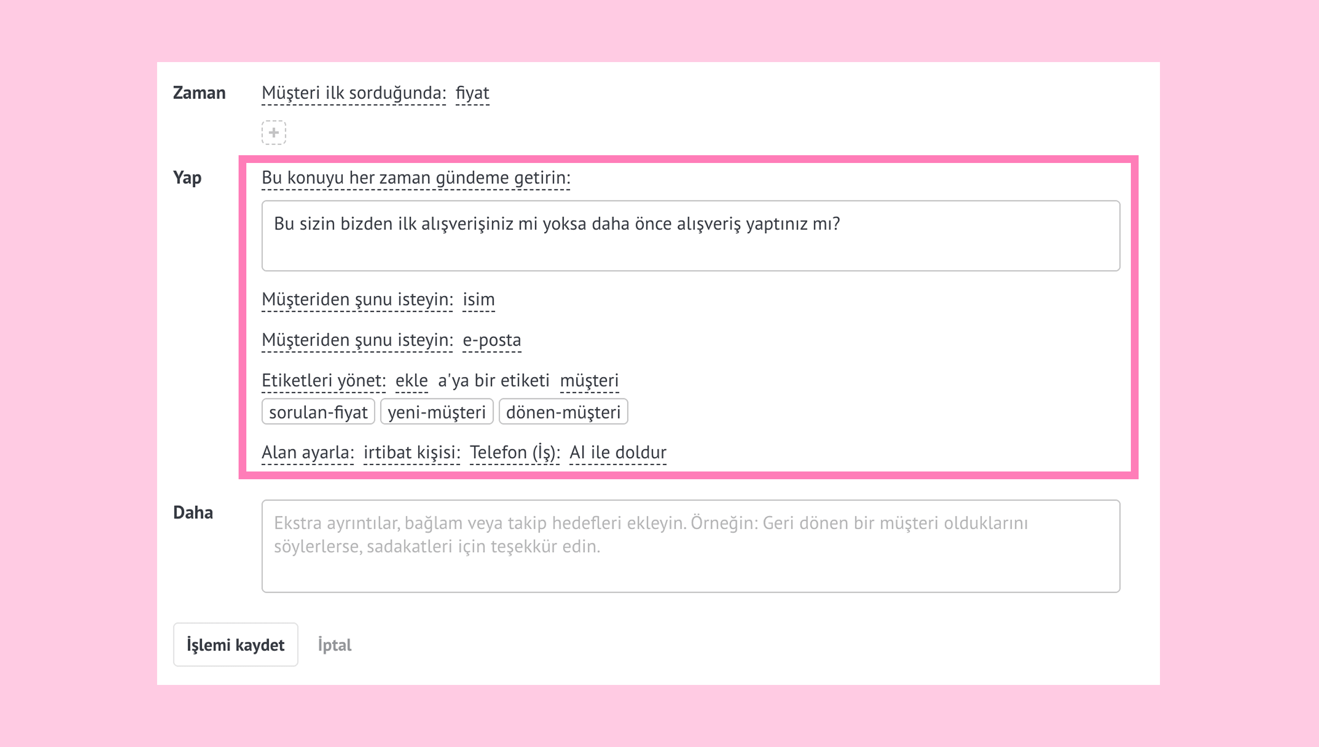 Daha Fazla (isteğe bağlı) - Bir durumun biraz daha netleştirilmesi veya kontrol edilmesi gerektiğinde AI ajanın uyması gereken ek kurallar.