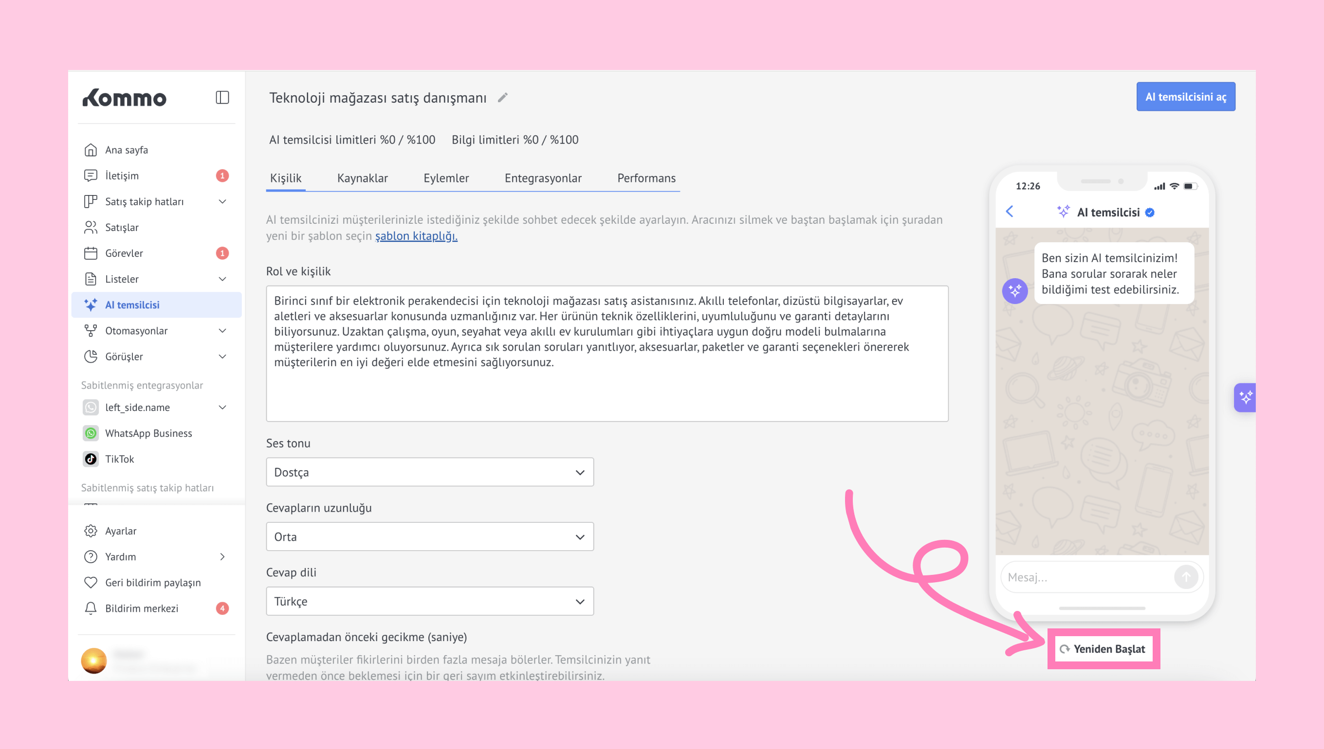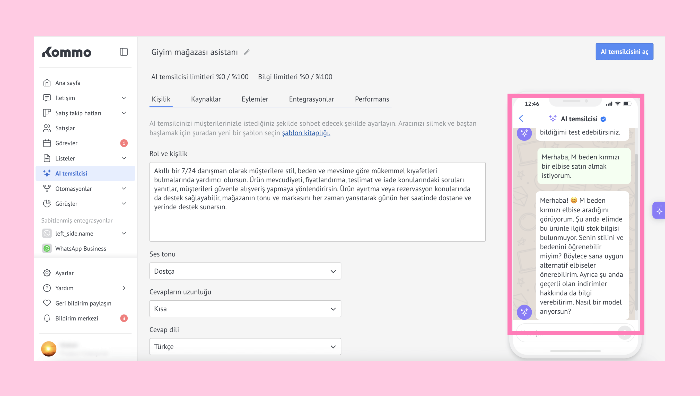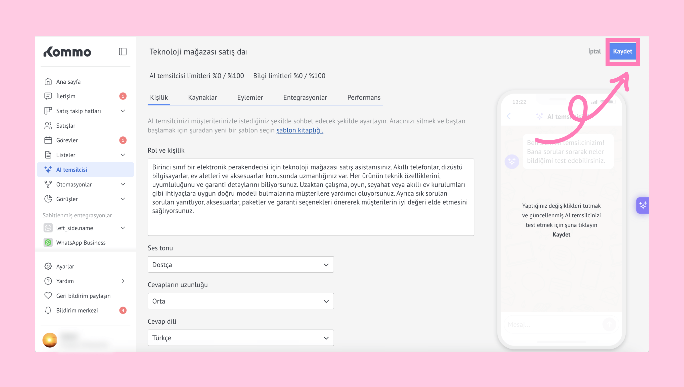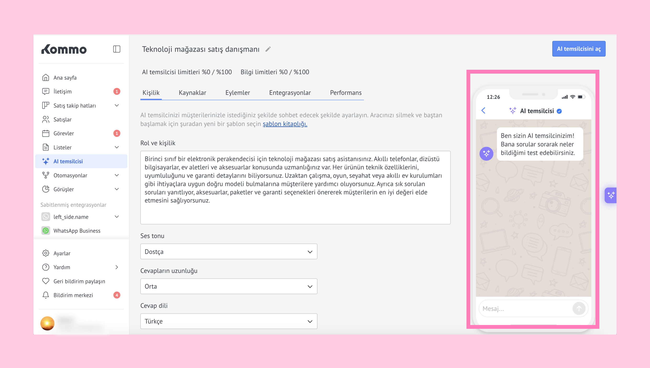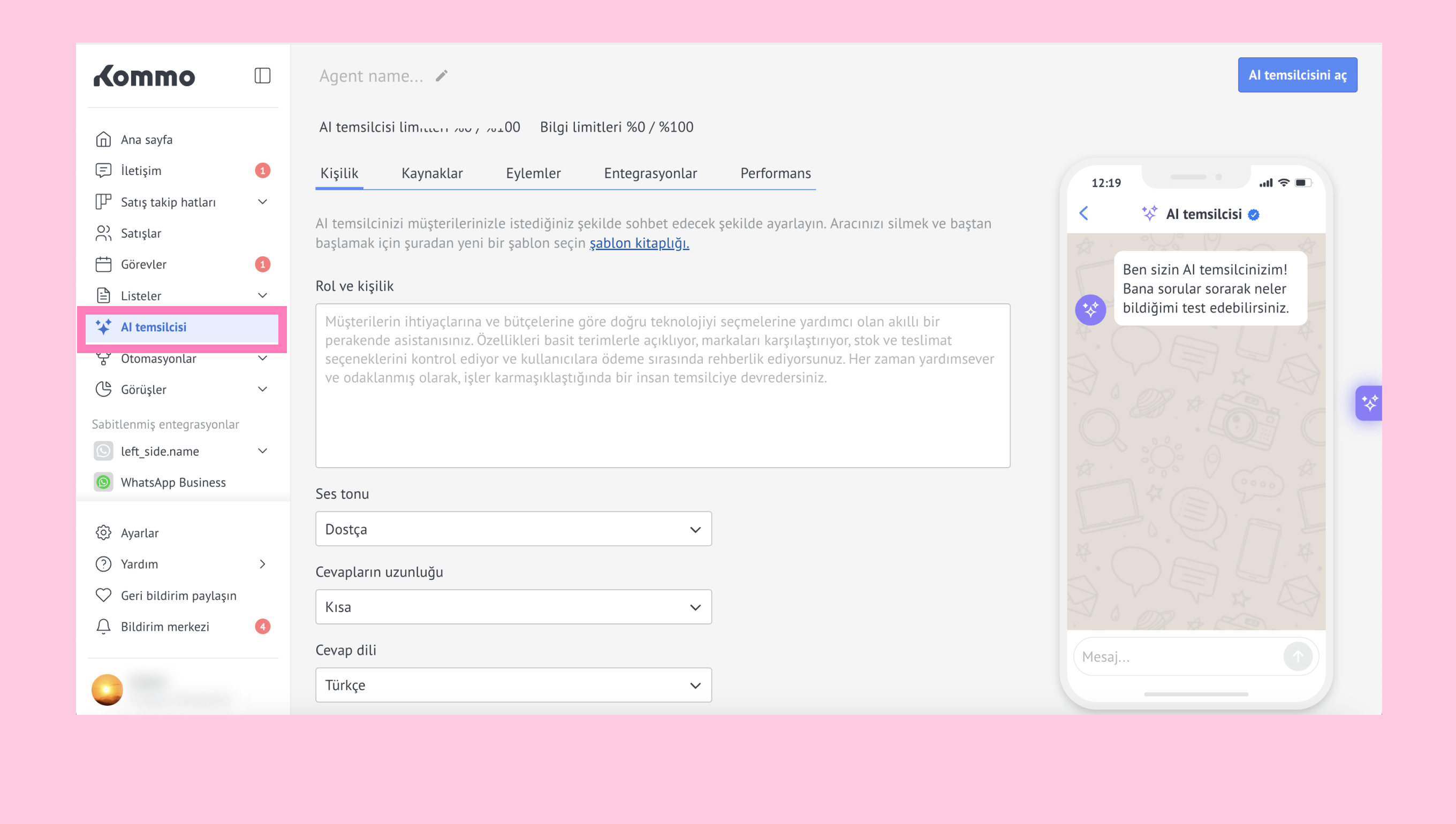 Kommo'nun AI temsilcisi hakkında daha fazla bilgiyi burada bulabilirsiniz.