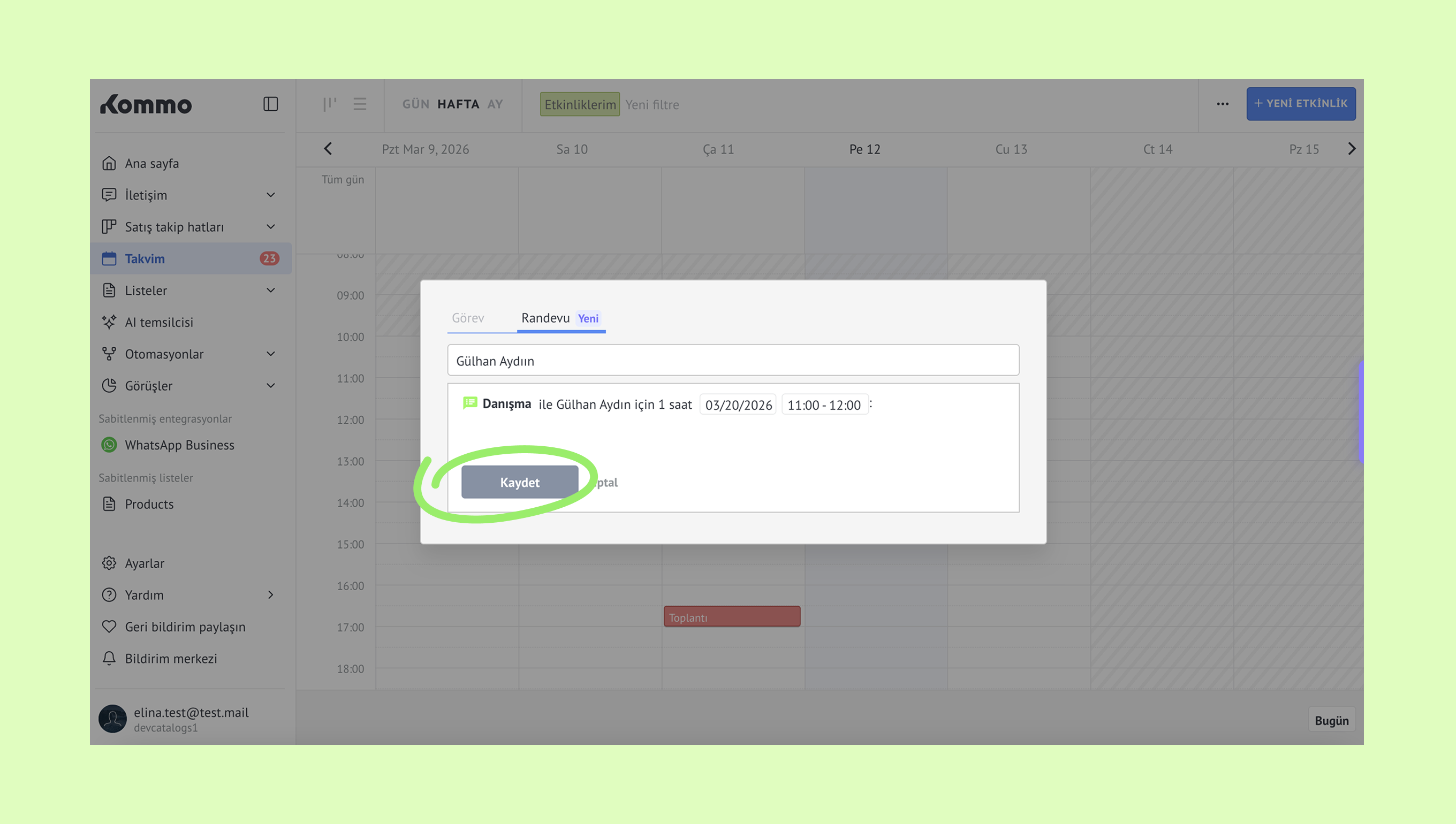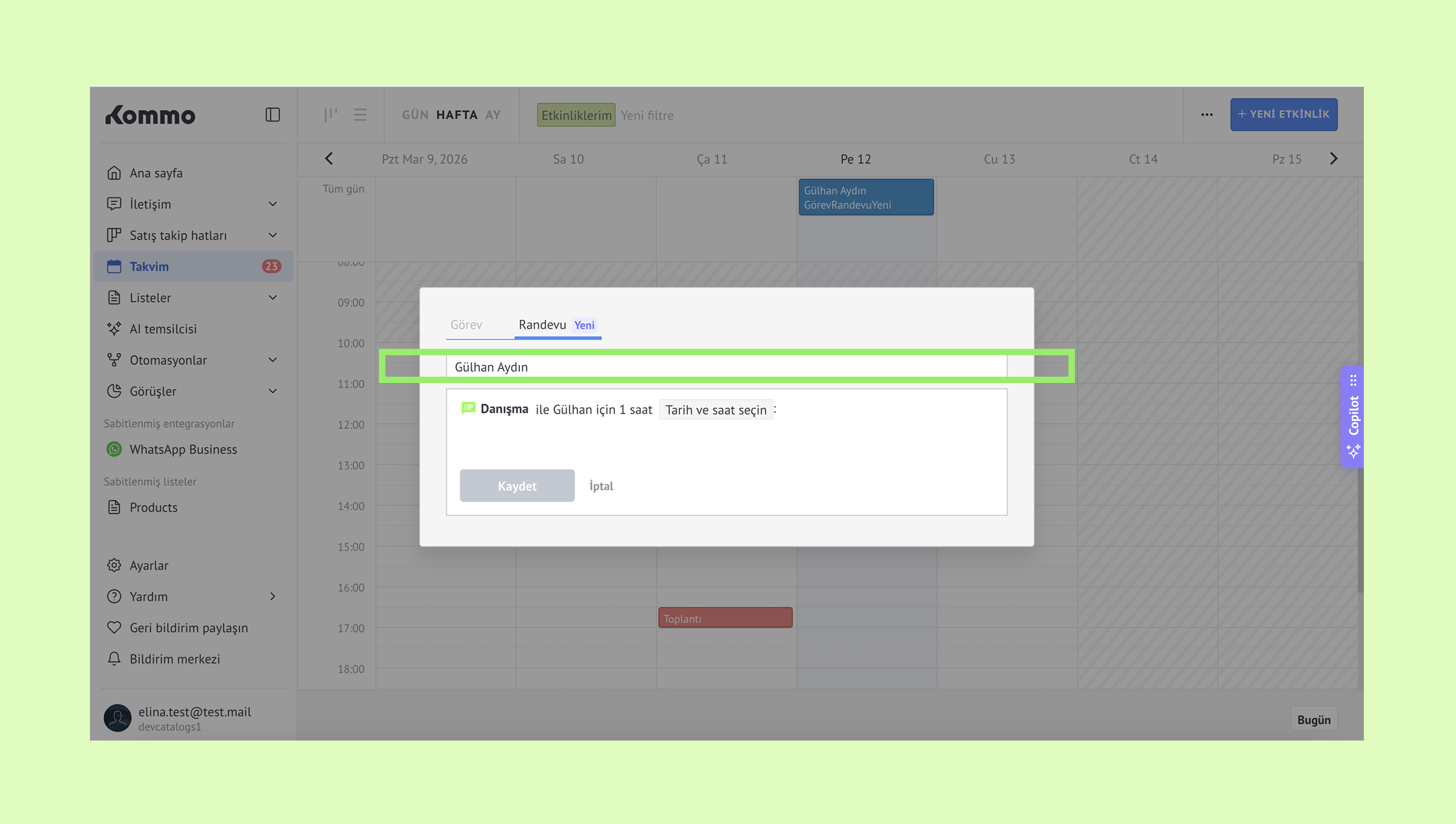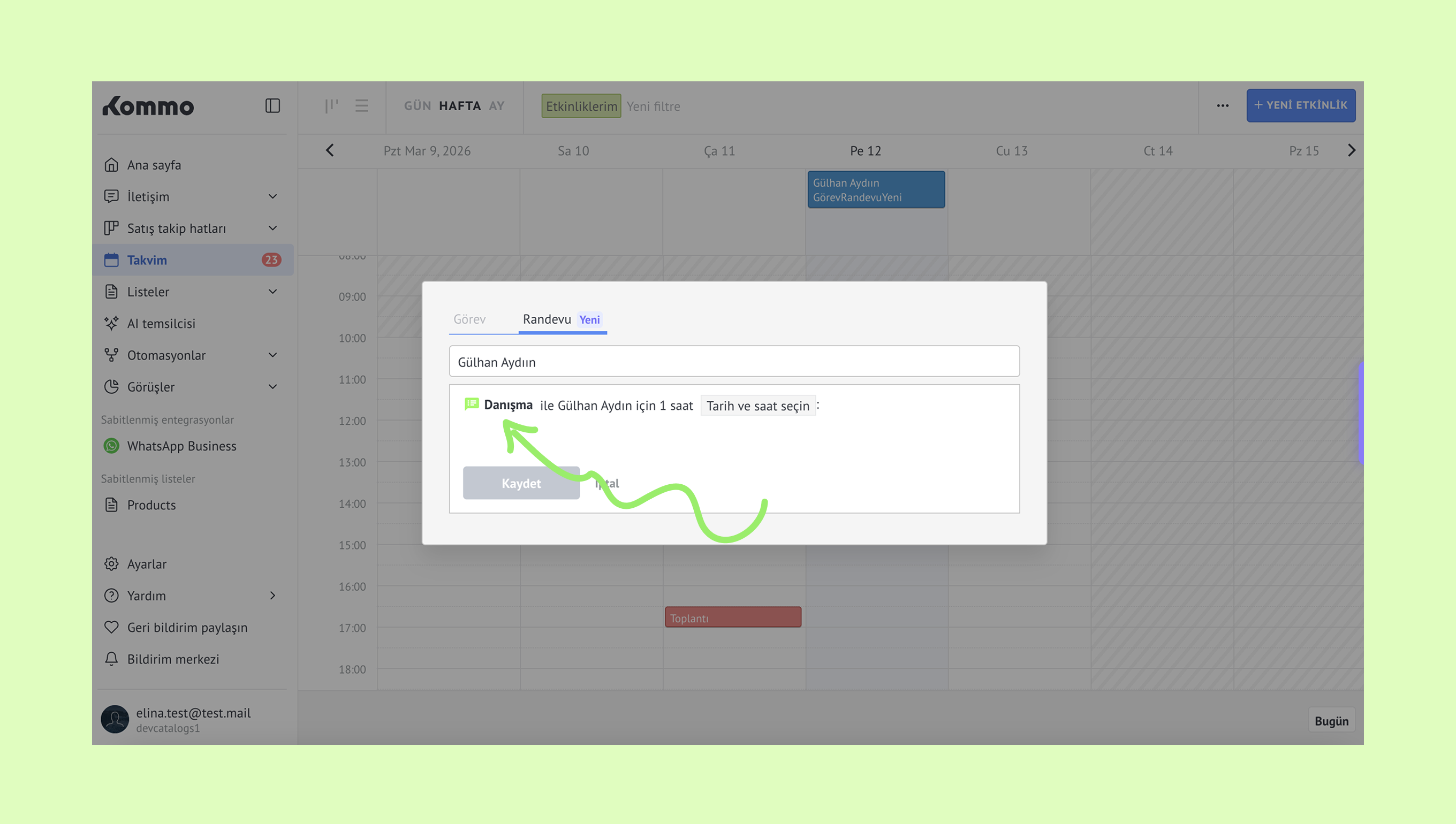 Kommo’da randevuları yönetme