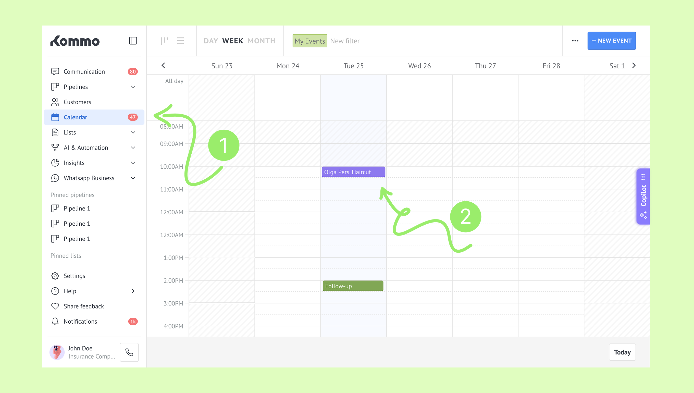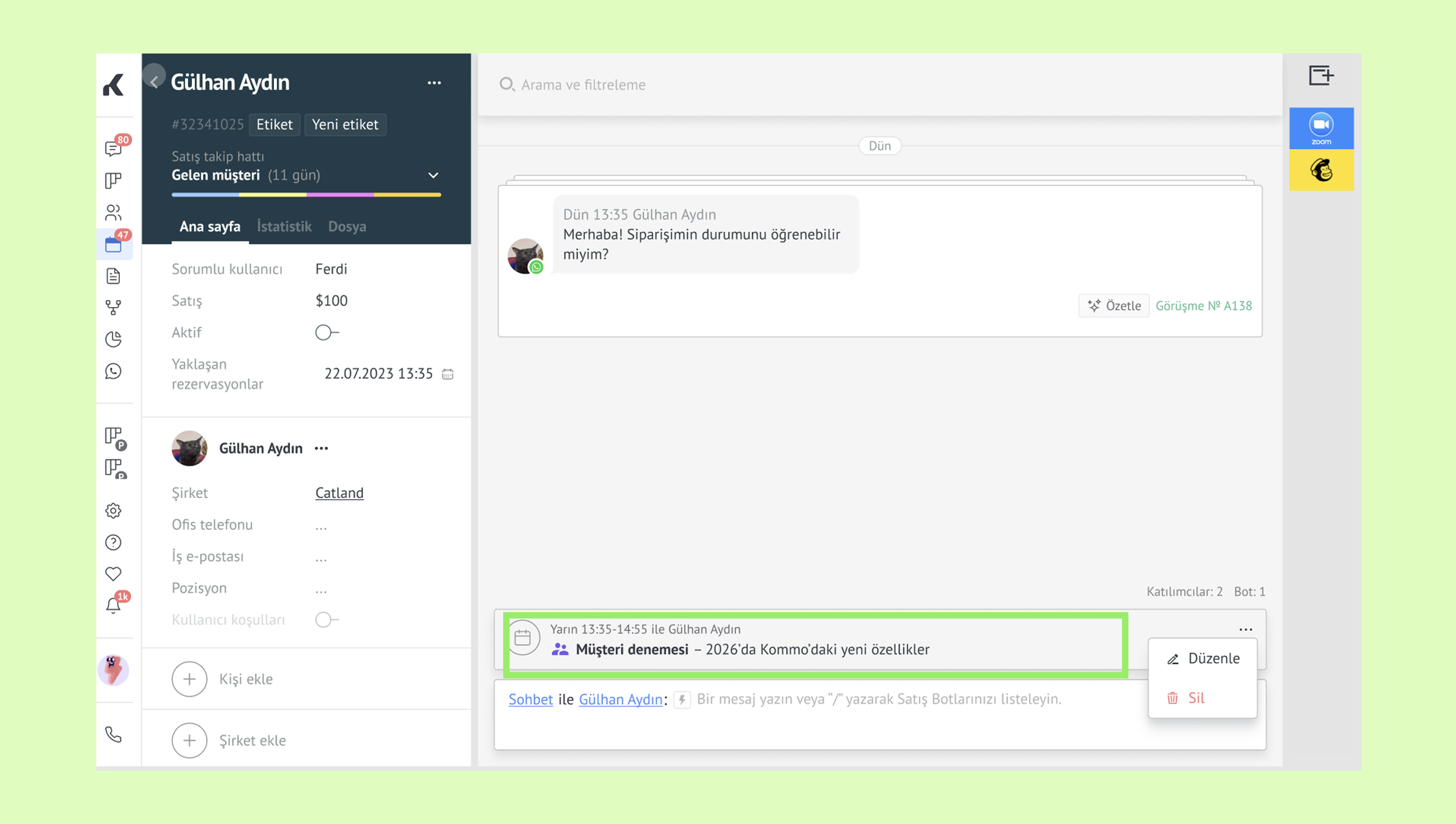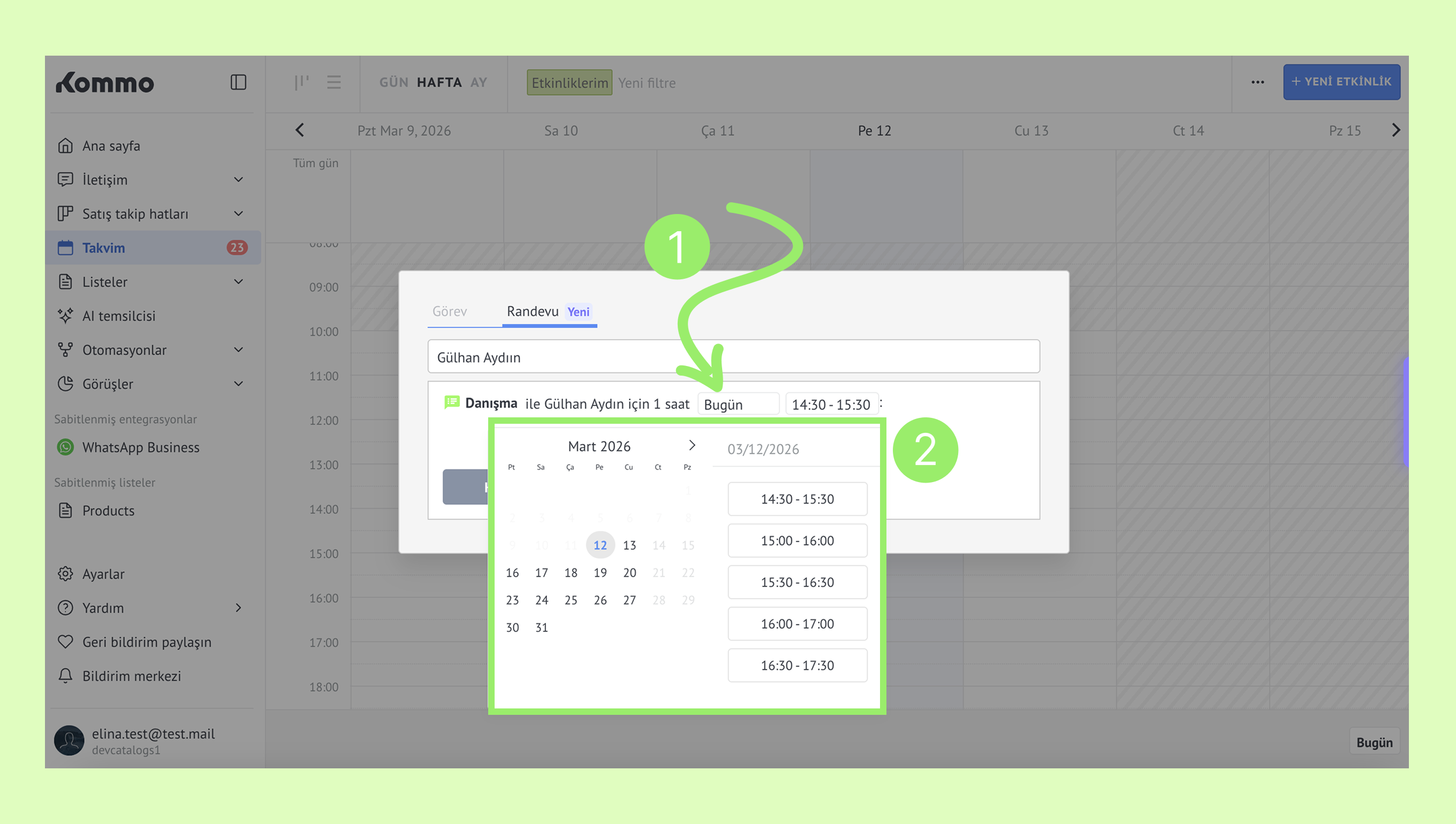 Kommo’da randevuları yönetme