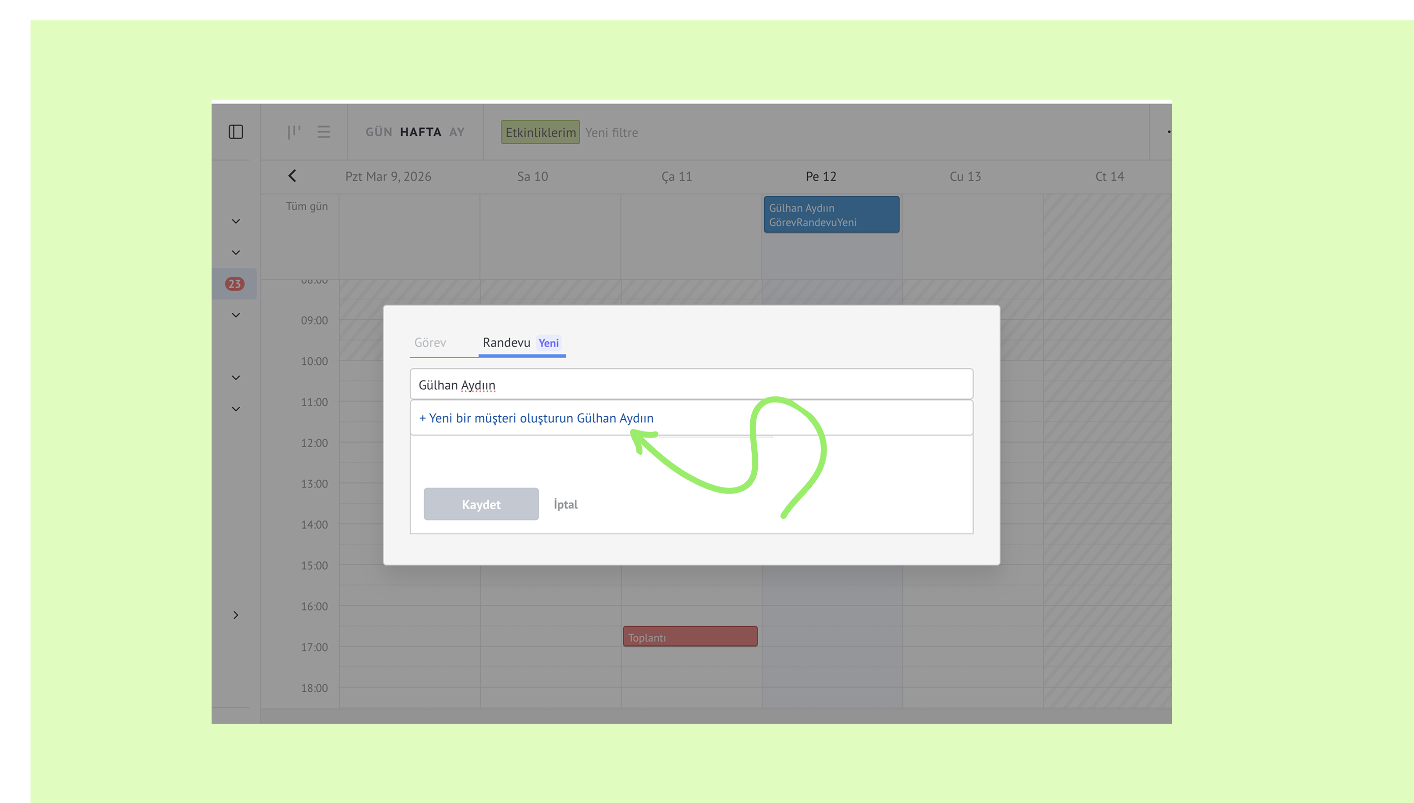 Randevu oluşturun