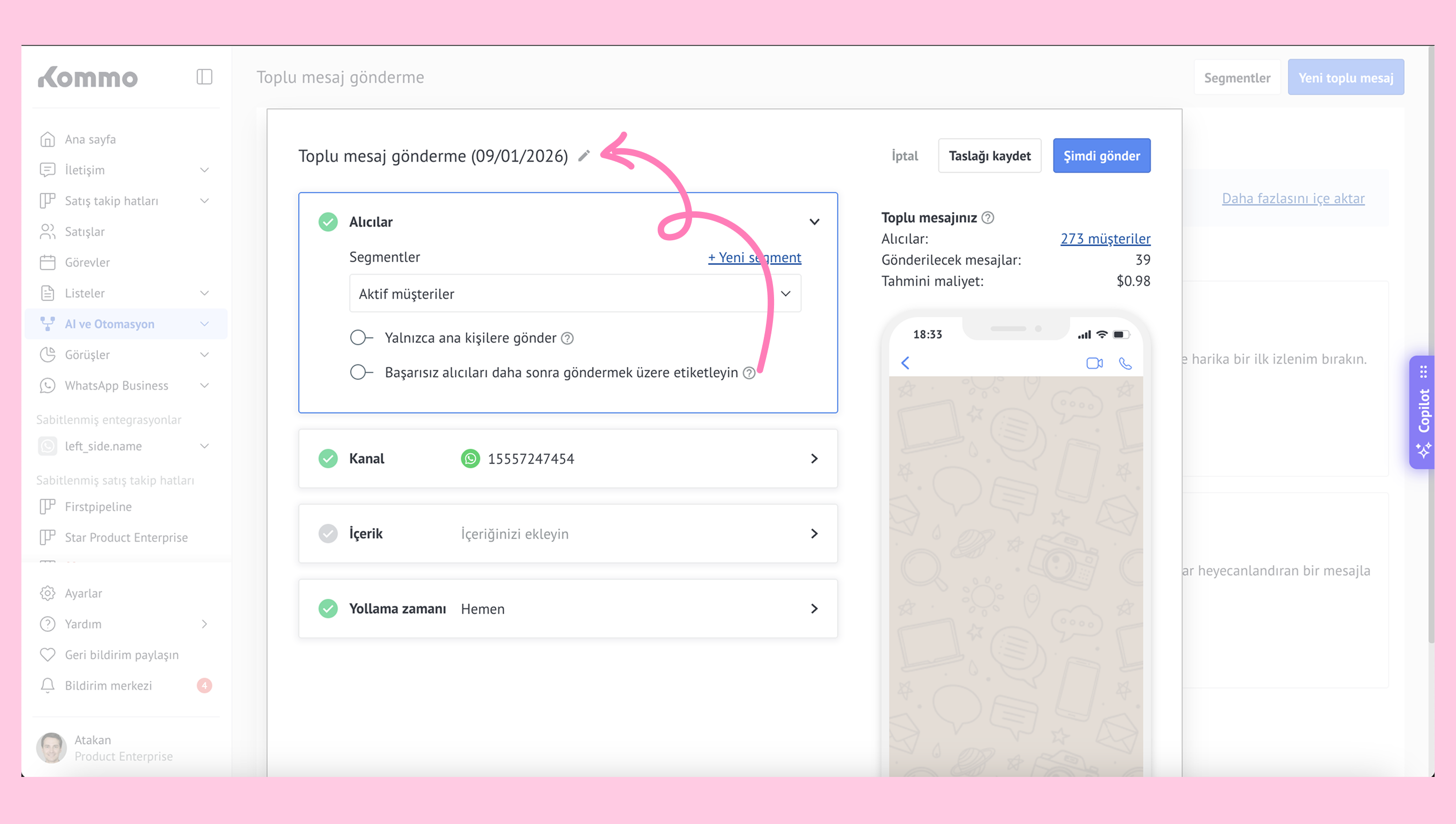 Temel kurulum için, Kommo’da toplu mesajları kurun ve özelleştirin makalemizi inceleyin.