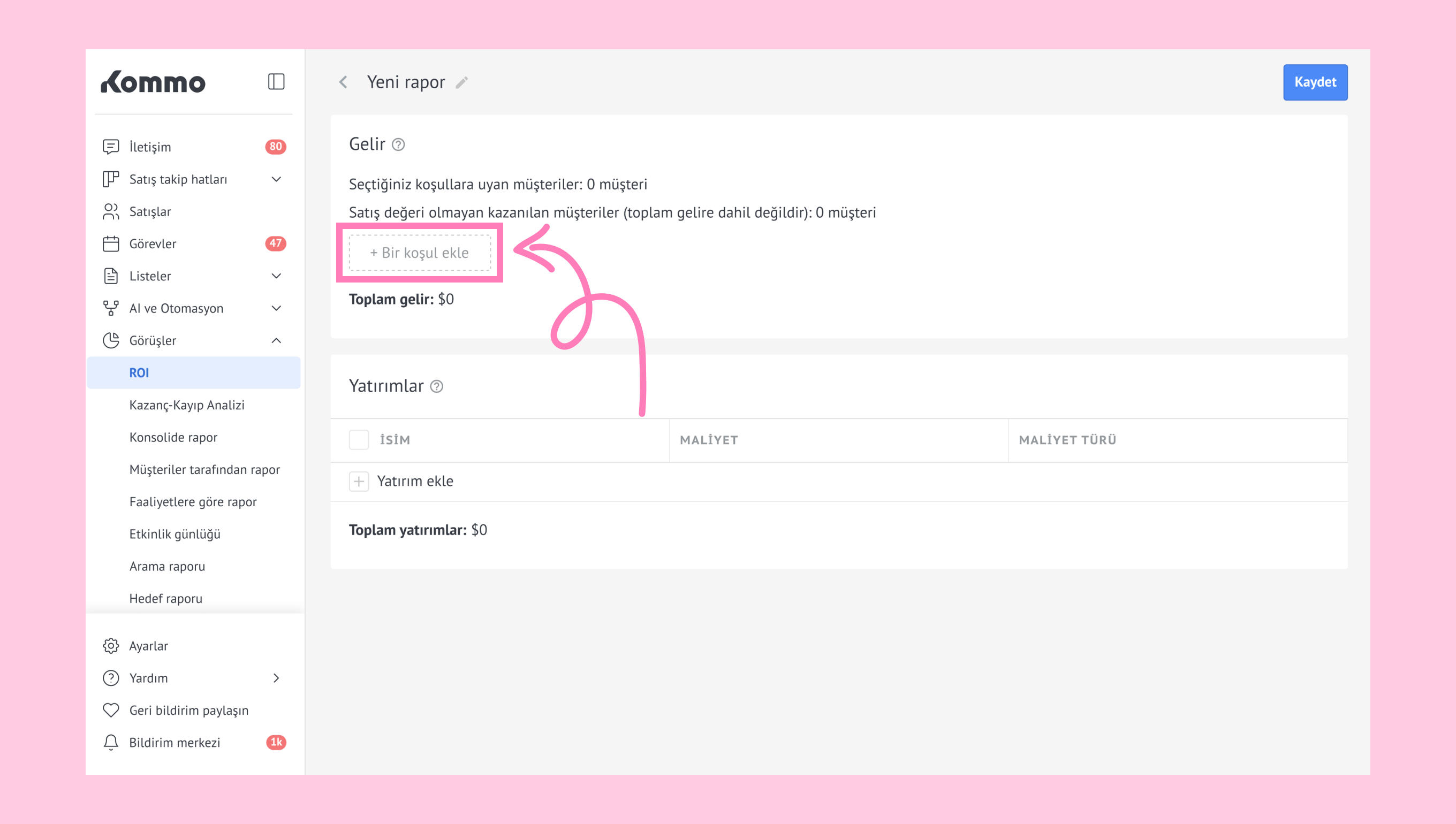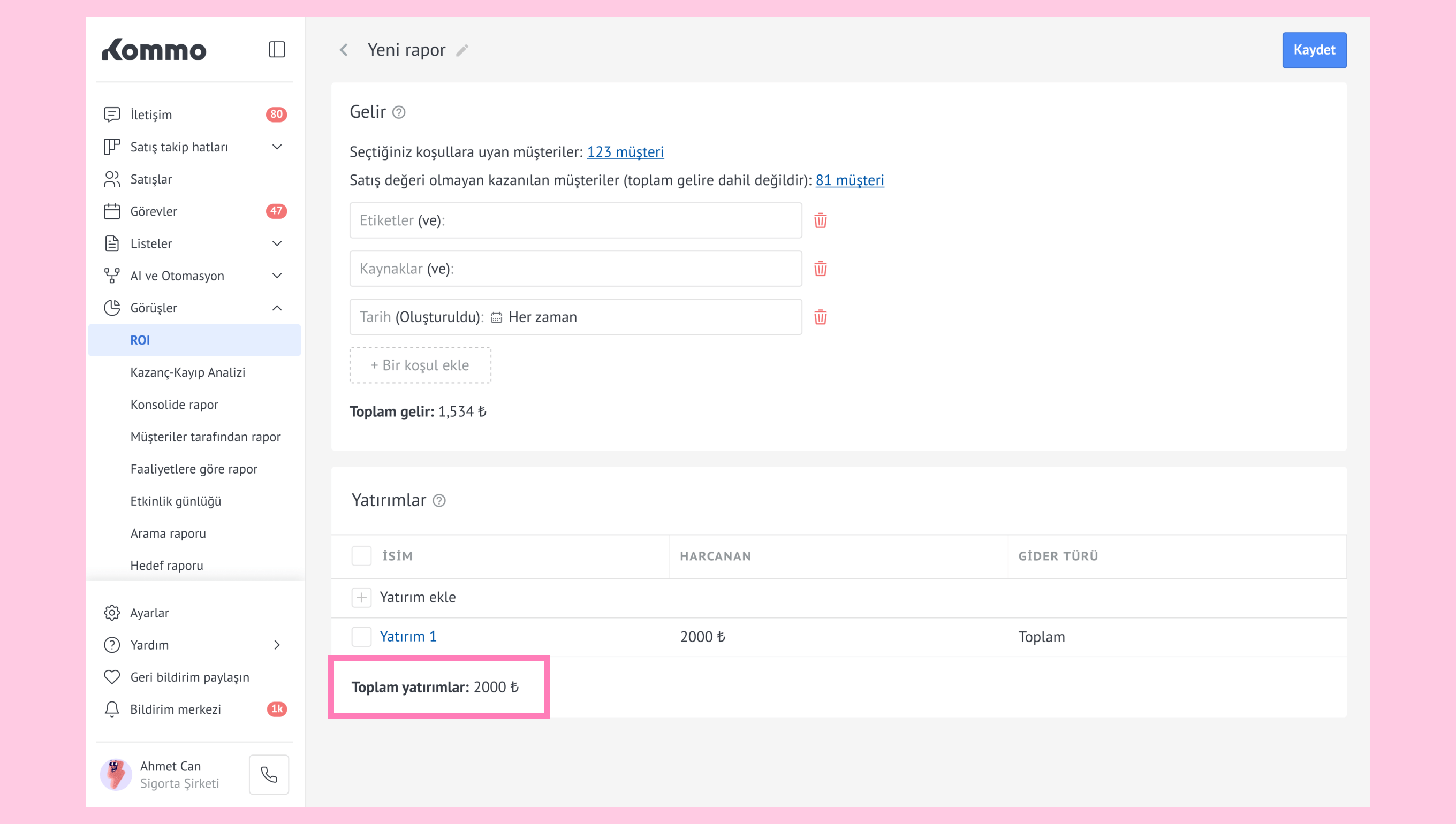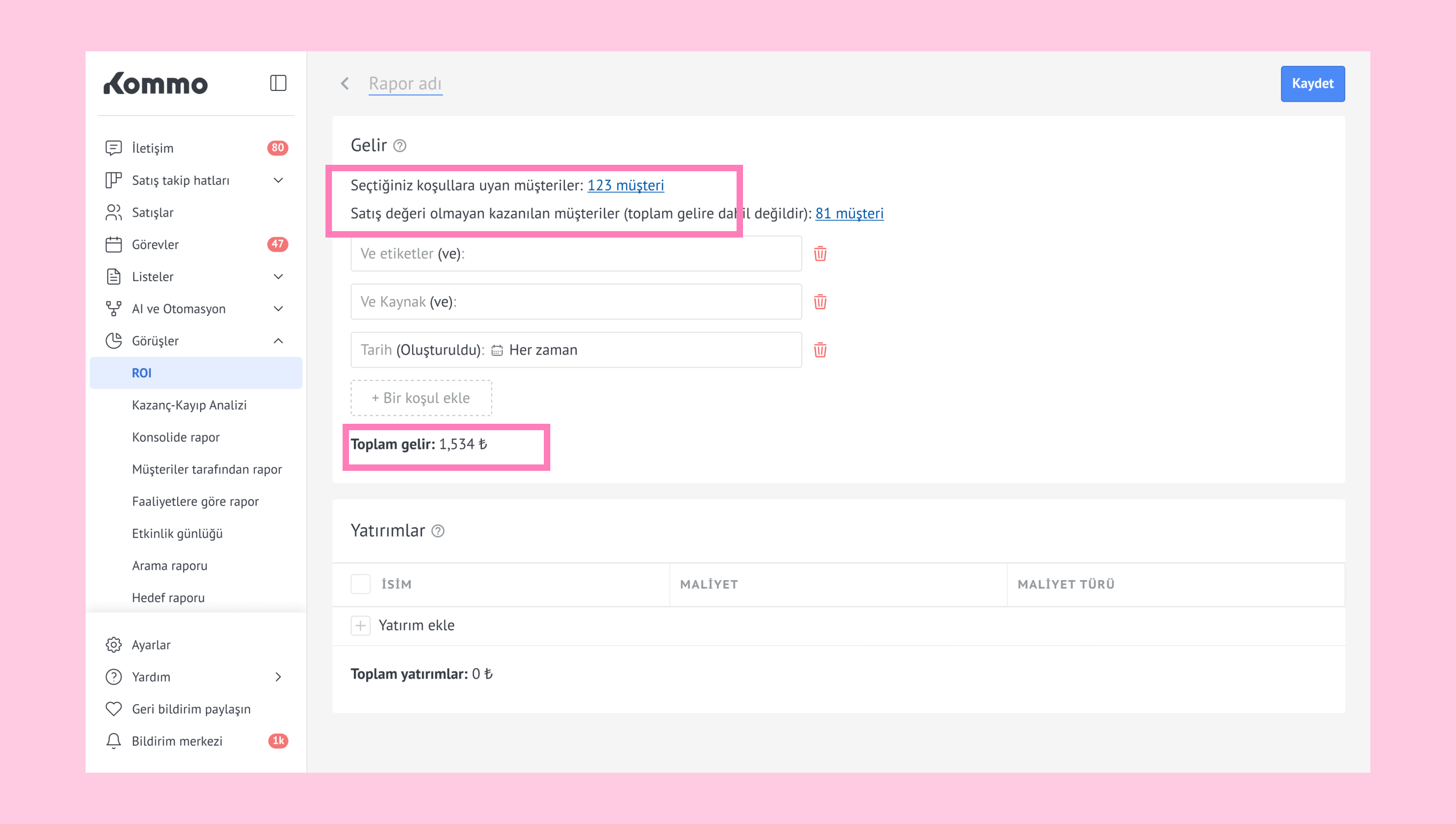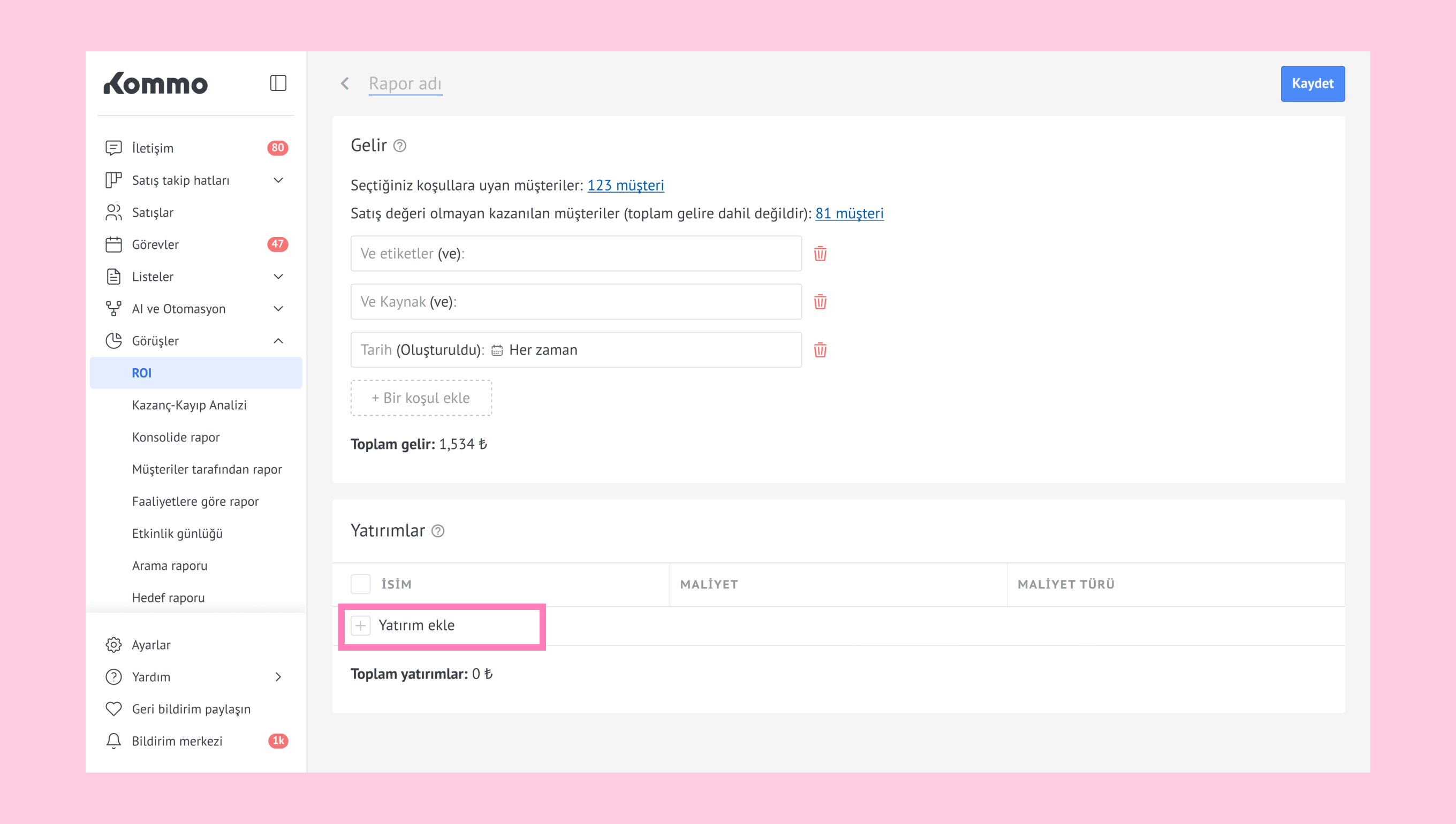 Dikkat: Hesabınızda 25'e kadar ROI raporu oluşturabilirsiniz.