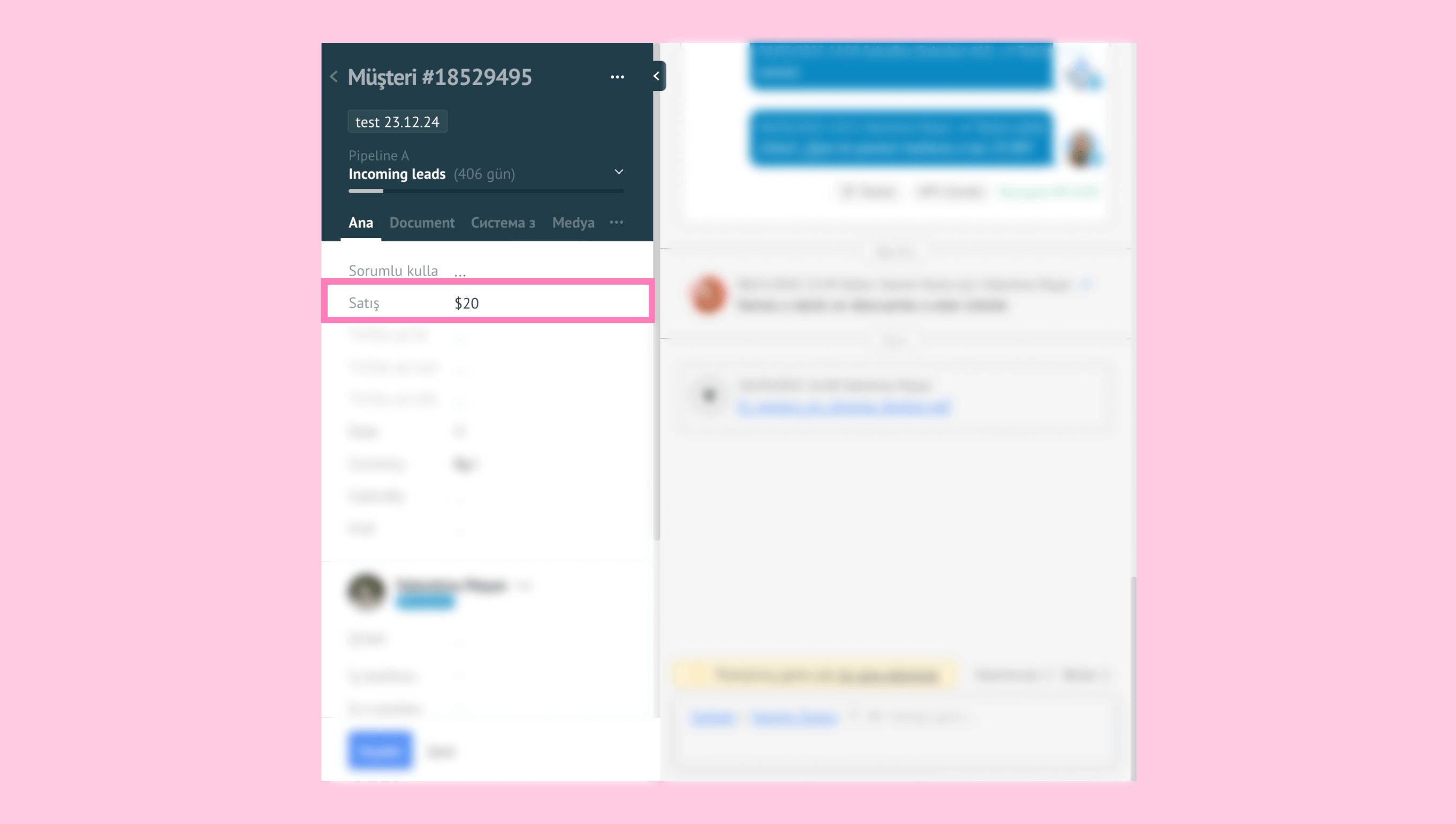 Gelirinizin ve ROI'nizin doğru kalması için müşteri bağlantısına tıklayın ve Satış alanındaki eksik tutarı doldurun.